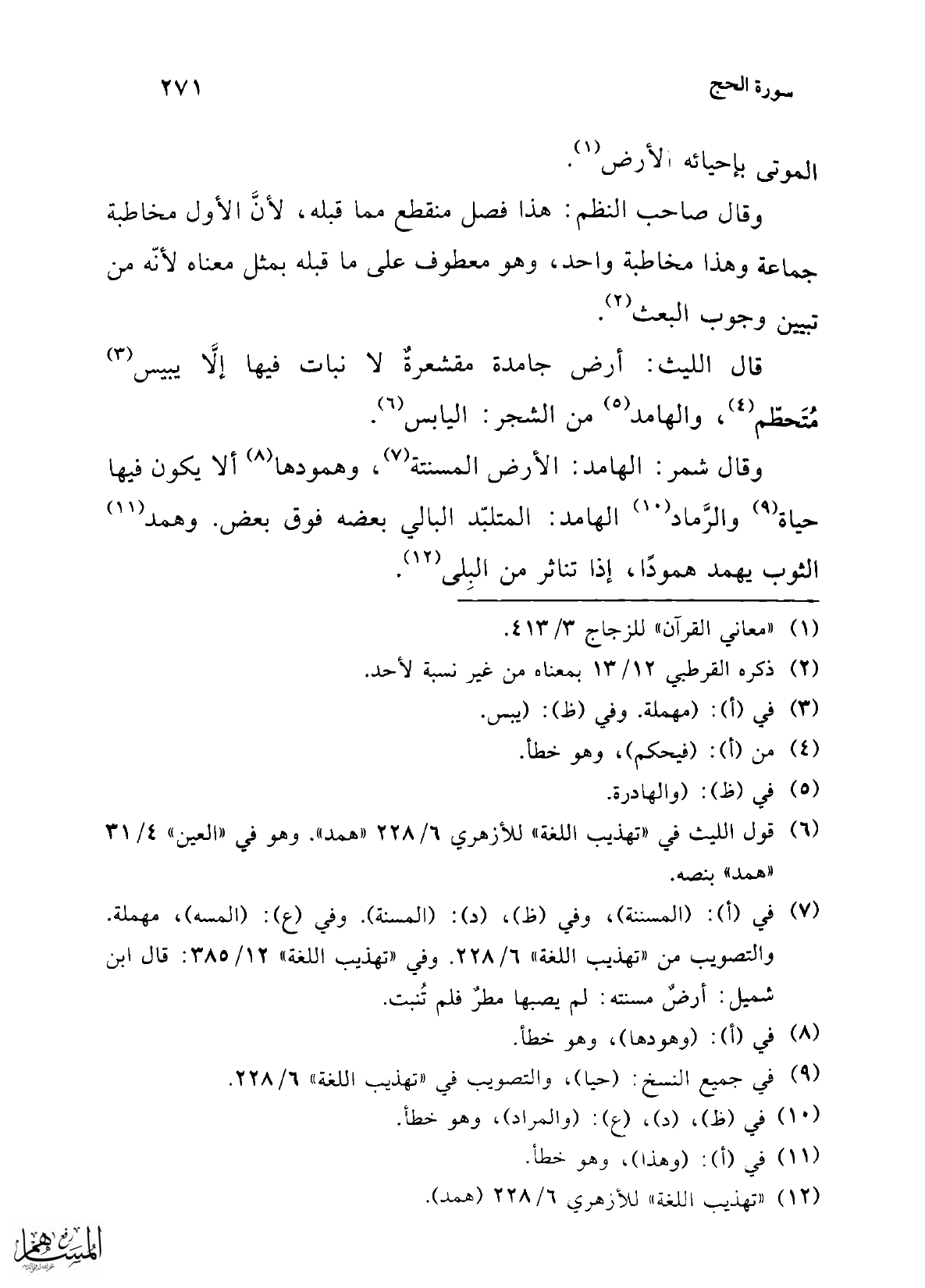 (¬12) "تهذيب اللغة" للأزهري 6/ 228 (همد).