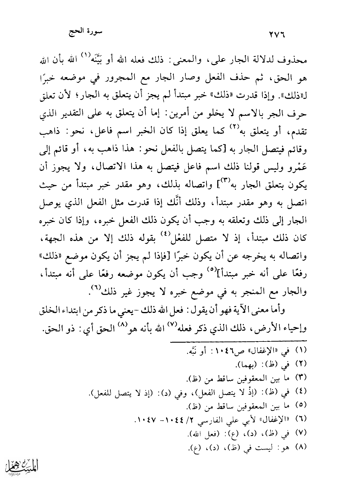 (¬6) "الإغفال" لأبي علي الفارسي 2/ 1044 - 1047.