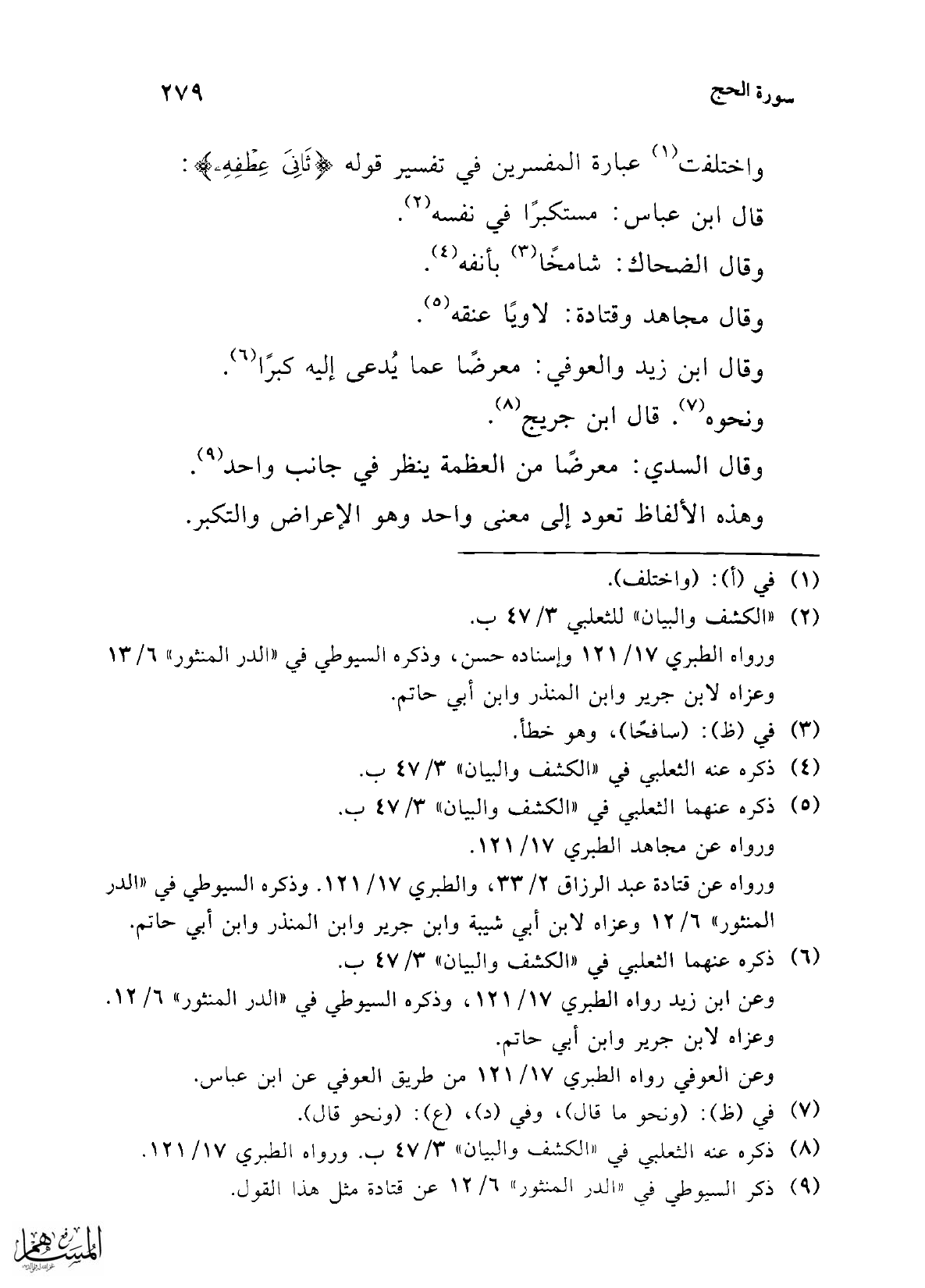 واختلفت (¬1) عبارة المفسرين في تفسير قوله {ثَانِيَ عِطْفِهِ}: