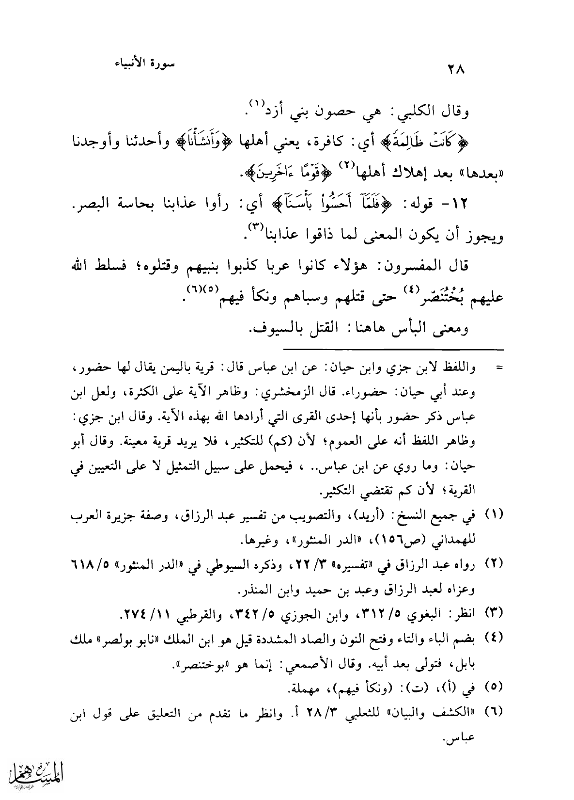 (¬6) "الكشف والبيان" للثعلبي 3/ 28 أ. وانظر ما تقدم من التعليق على قول ابن عباس.
