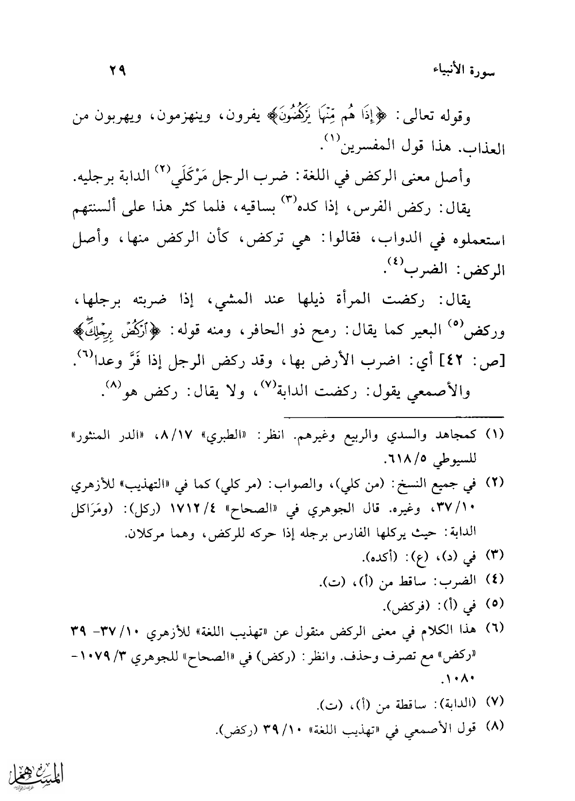 (¬8) قول الأصمعي في "تهذيب اللغة" 10/ 39 (ركض).