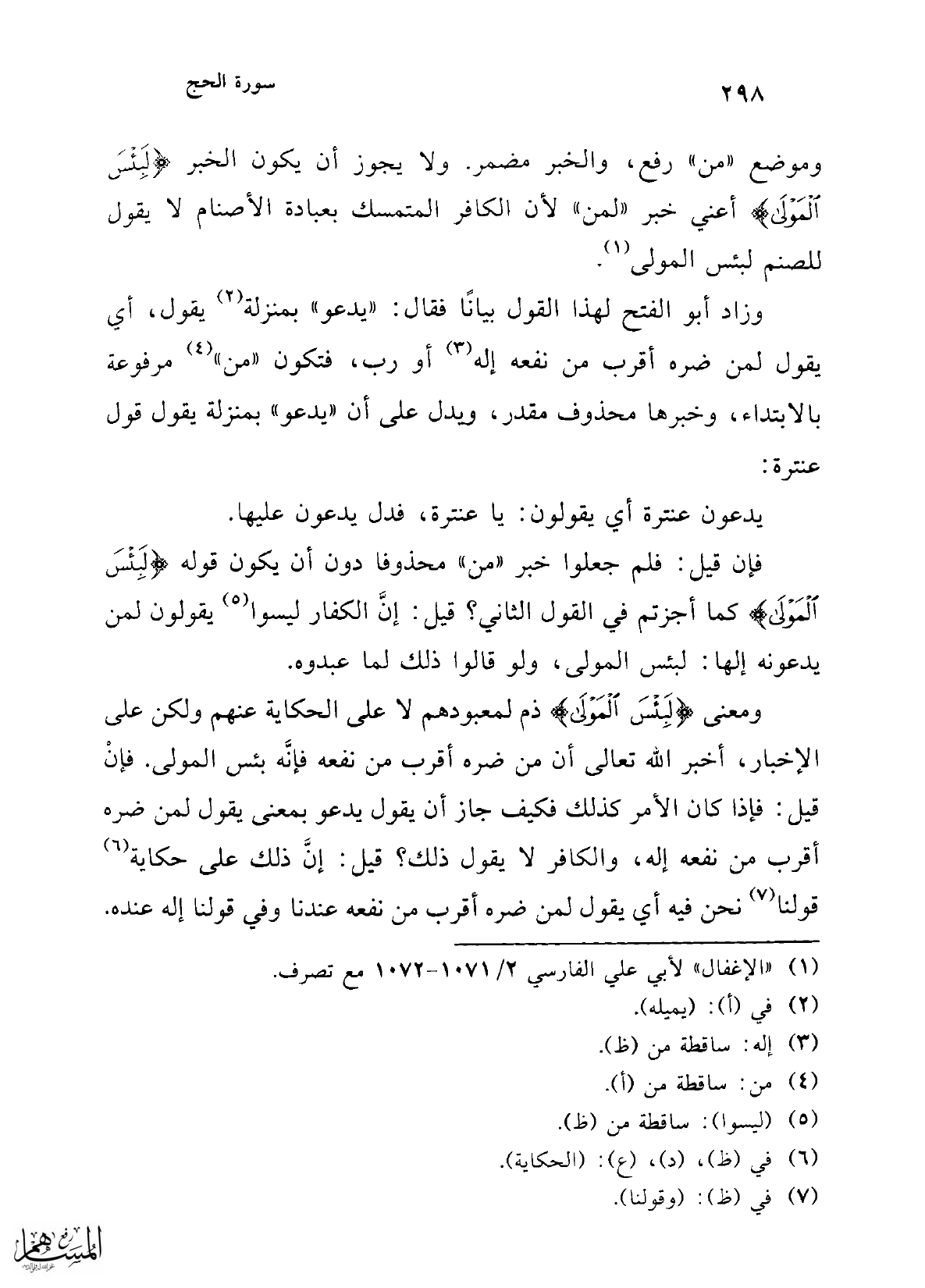 (¬1) "الإغفال" لأبي علي الفارسي 2/ 1071 - 1072 مع تصرف.
