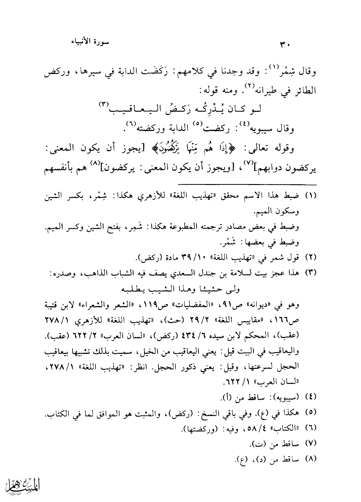 (¬2) قول شمر في "تهذيب اللغة" 10/ 39 مادة (ركض).