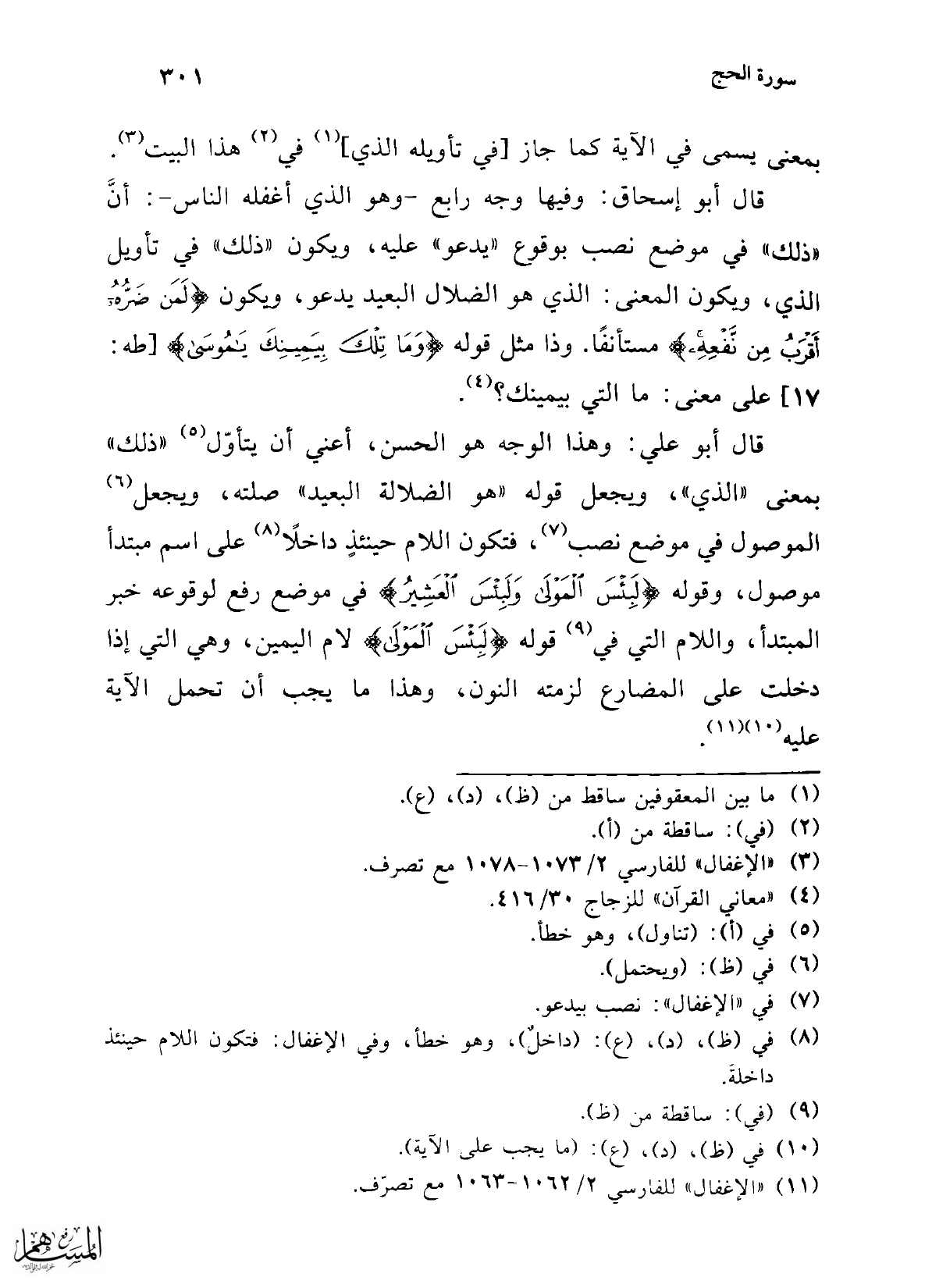 (¬11) "الإغفال" للفارسي 2/ 1062 - 1063 مع تصرف.