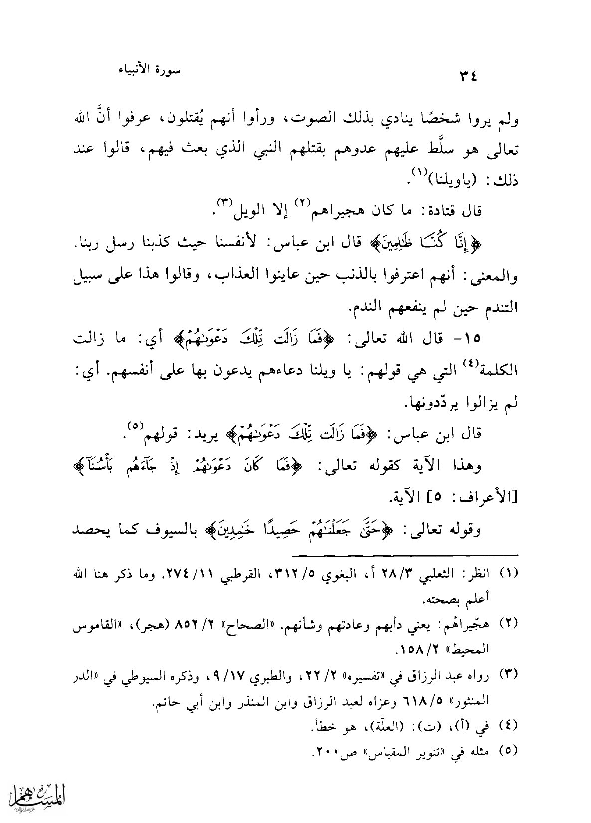 (¬3) رواه عبد الرزاق في "تفسيره" 2/ 22، والطبري 17/ 9، وذكره السيوطي في "الدر المنثور" 5/ 618 وعزاه لعبد الرزاق وابن المنذر وابن أبي حاتم.
