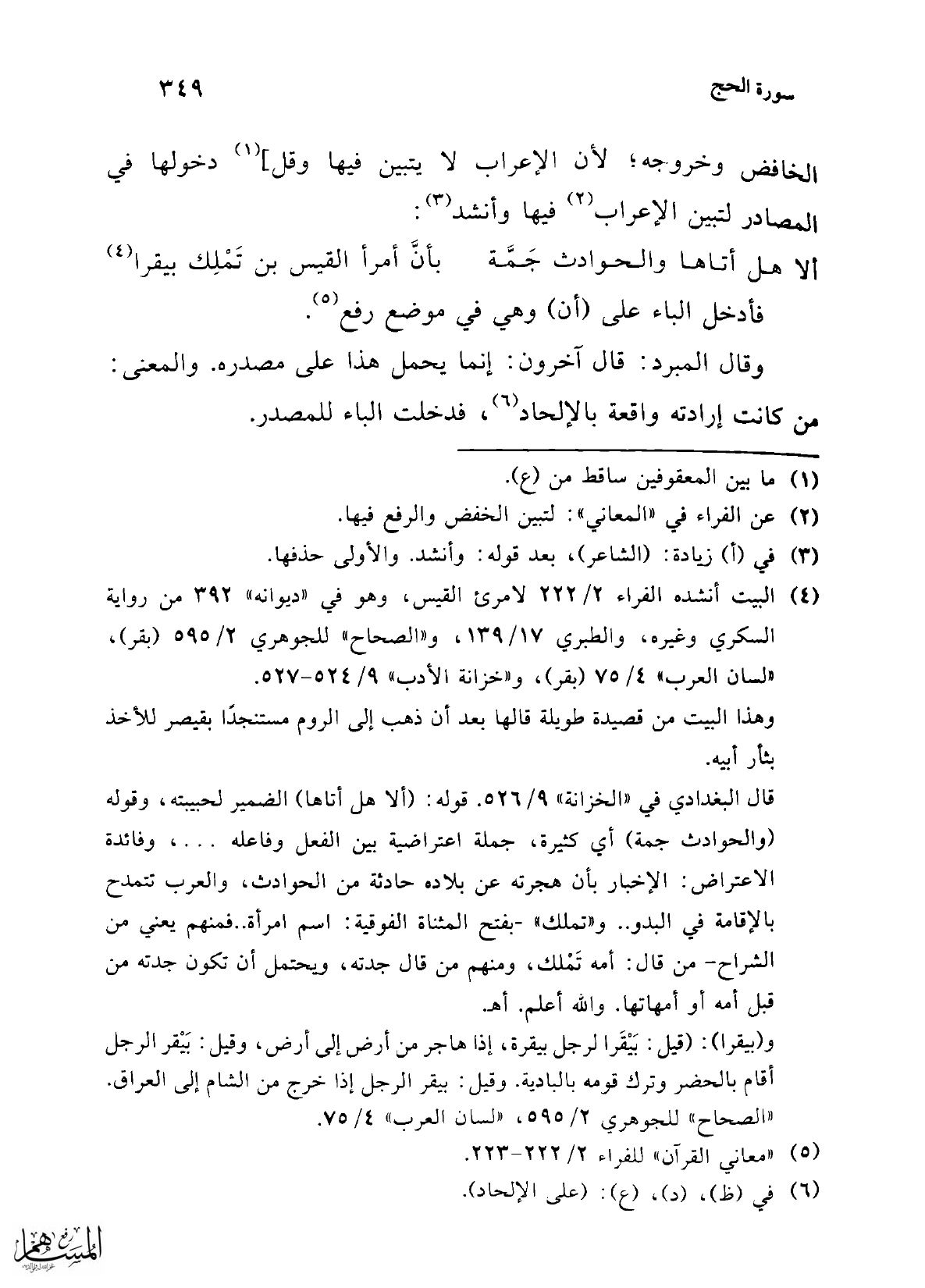(¬5) "معاني القرآن" للفراء 2/ 222 - 223.