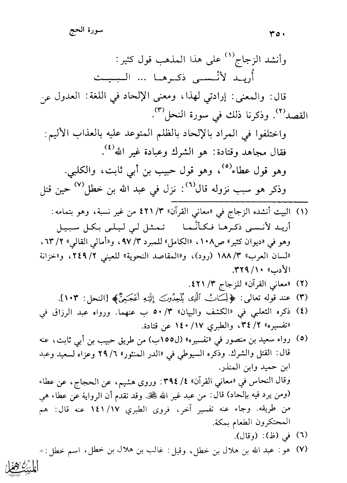 قال: والمعنى: إرادتي لهذا، ومعنى الإلحاد في اللغة: العدول عن القصد (¬2). وذكرنا ذلك في سورة النحل (¬3).