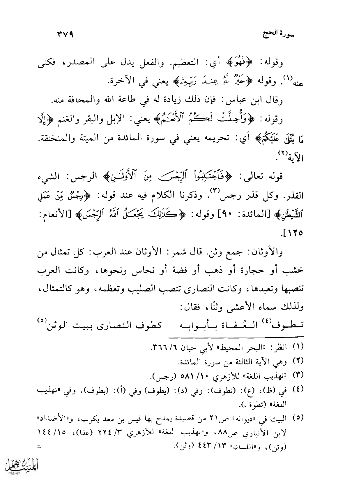 (¬5) البيت في "ديوانه" ص 21 ص قصيدة يمدح بها قيس بن معد يكرب، و"الأضداد" لابن الأنباري ص 88، و "تهذيب اللغة" للأزهري 3/ 224 (عفا)، 15/ 144 (وثن)، و"اللسان" 13/ 443 (وثن).