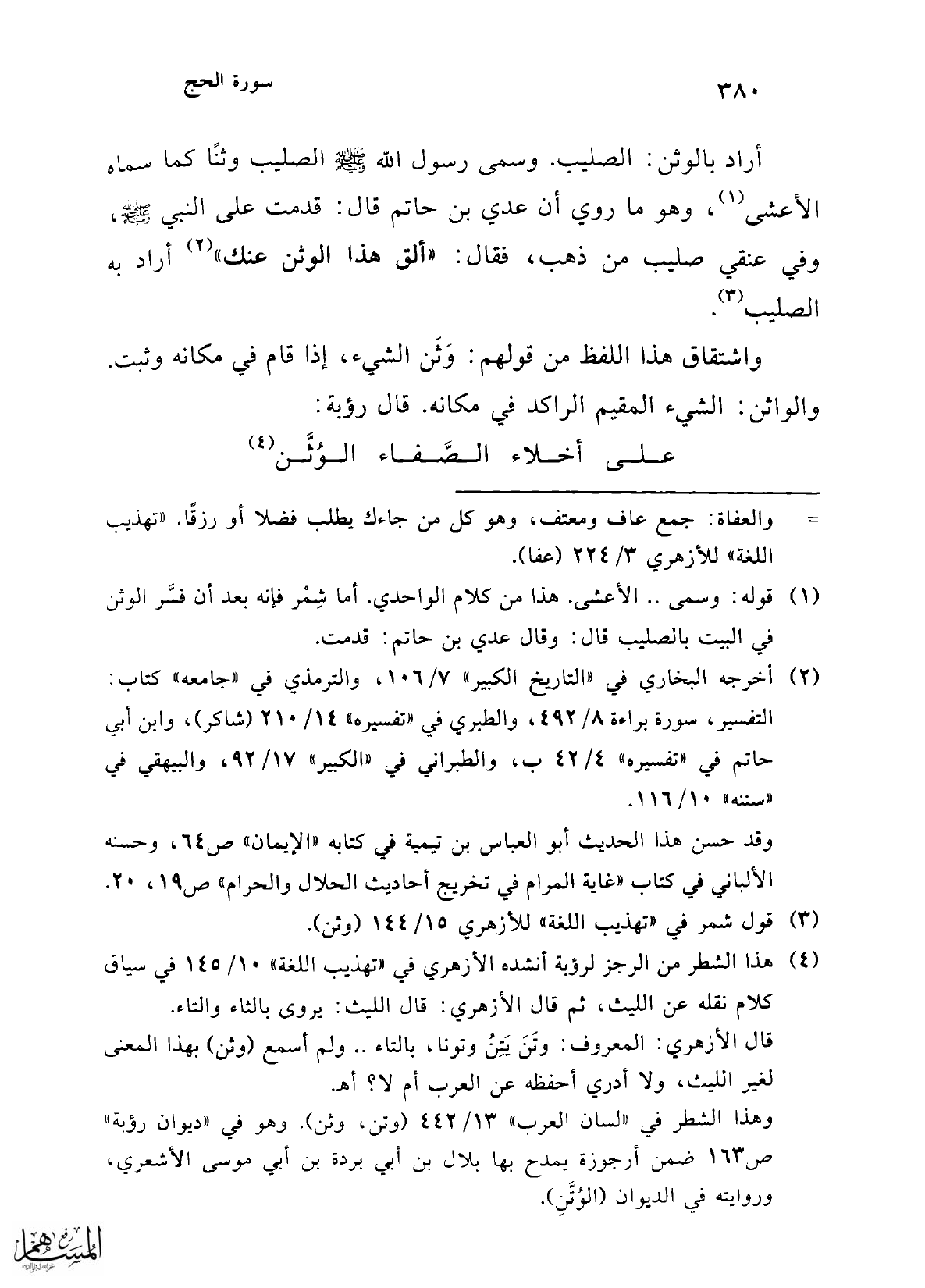 (¬1) قوله: وسمى .. الأعشى. هذا من كلام الواحدي. أما شِمْر فإنه بعد أن فسَّر الوثن في البيت بالصليب قال: وقال عدي بن حاتم: قدمت.