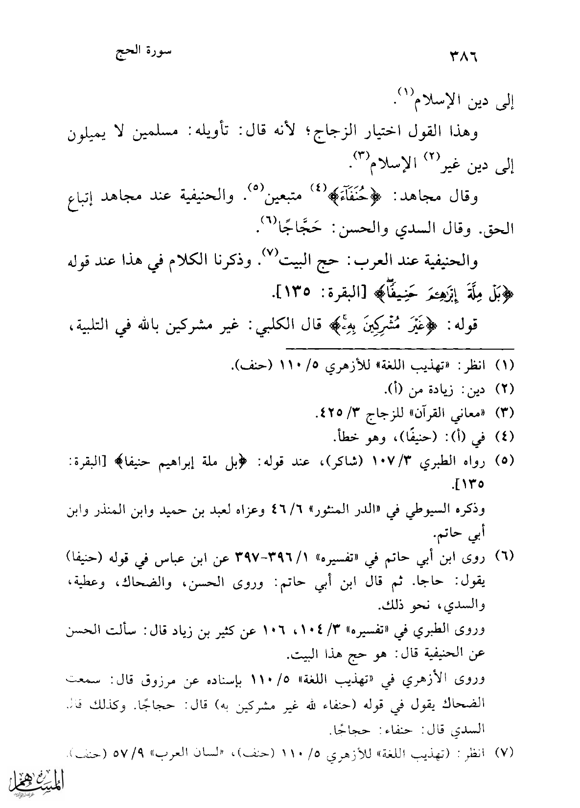 (¬5) رواه الطبري 3/ 107 (شاكر)، عند قوله: {بَلْ مِلَّةَ إِبْرَاهِيمَ حَنِيفًا} [البقرة: 135].