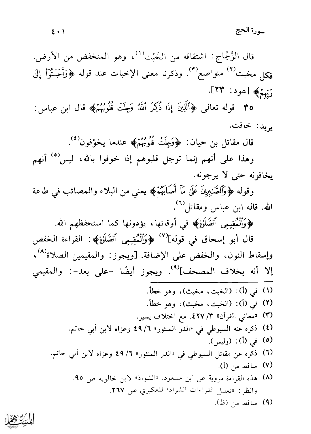 فكل مخبت (¬2) متواضع (¬3). وذكرنا معنى الإخبات عند قوله {وَأَخْبَتُوا إِلَى رَبِّهِمْ} [هود: 23].