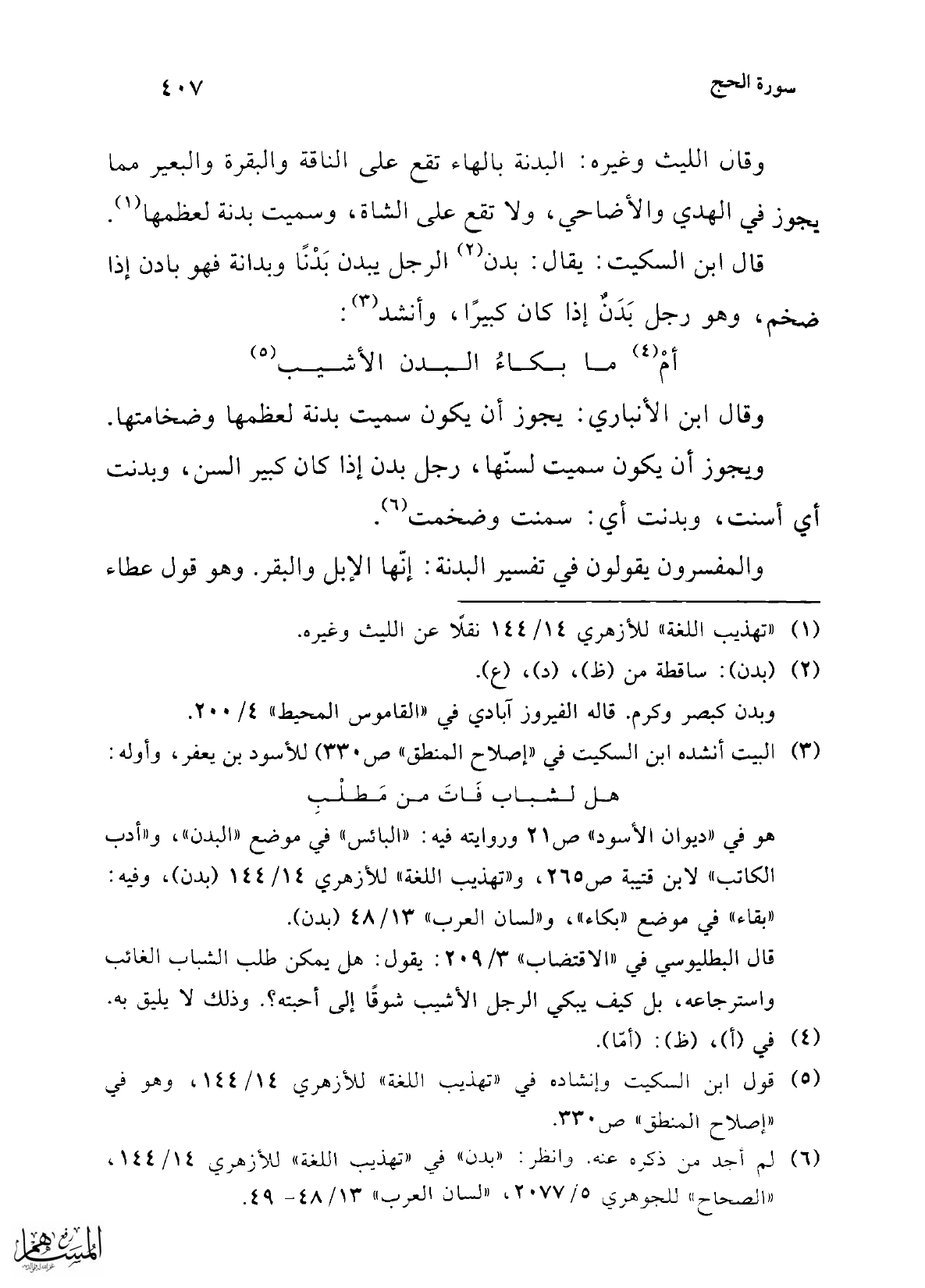 (¬6) لم أجد من ذكره عنه. وانظر: "بدن" في "تهذيب اللغة" للأزهري 14/ 144، "الصحاح" للجوهري 5/ 2077، "لسان العرب" 13/ 48 - 49.