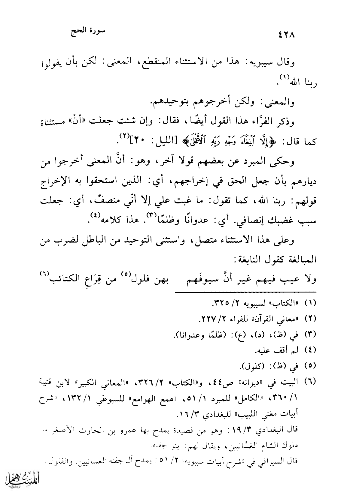 (¬6) البيت في "ديوانه" ص 44، و"الكتاب" 2/ 326، "المعاني الكبير" لابن قتيبة 1/ 360، "الكامل" للمبرد 1/ 51، "همع الهوامع" للسيوطي 1/ 132، "شرح أبيات مغني اللبيب" للبغدادي 3/ 16.