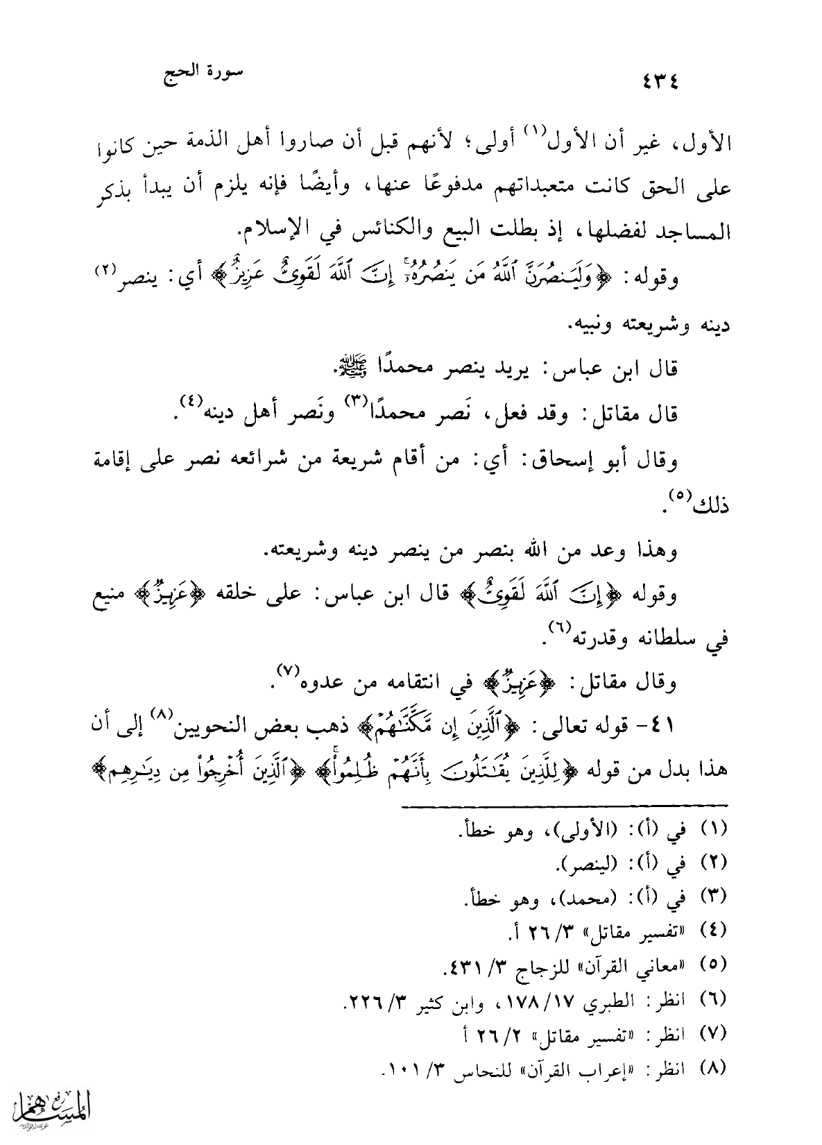 (¬6) انظر: الطبري 17/ 178، وابن كثير 3/ 226.