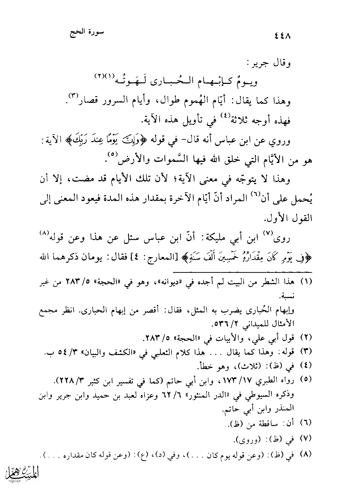 (¬8) في (ظ): (وعن قوله يوم كان ...)، وفي (د)، (ع): (وعن قوله كان مقداره ...).