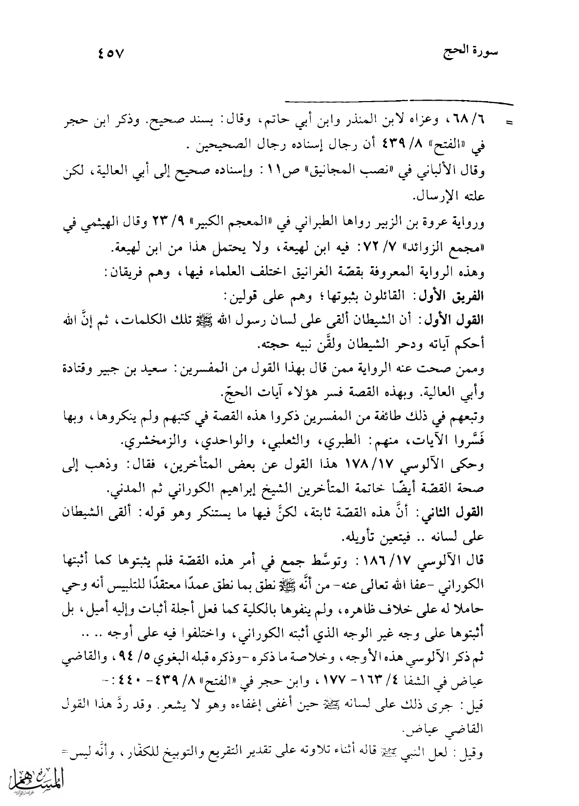 وهذه الرواية المعروفة بقصّة الغرانيق اختلف العلماء فيها، وهم فريقان: