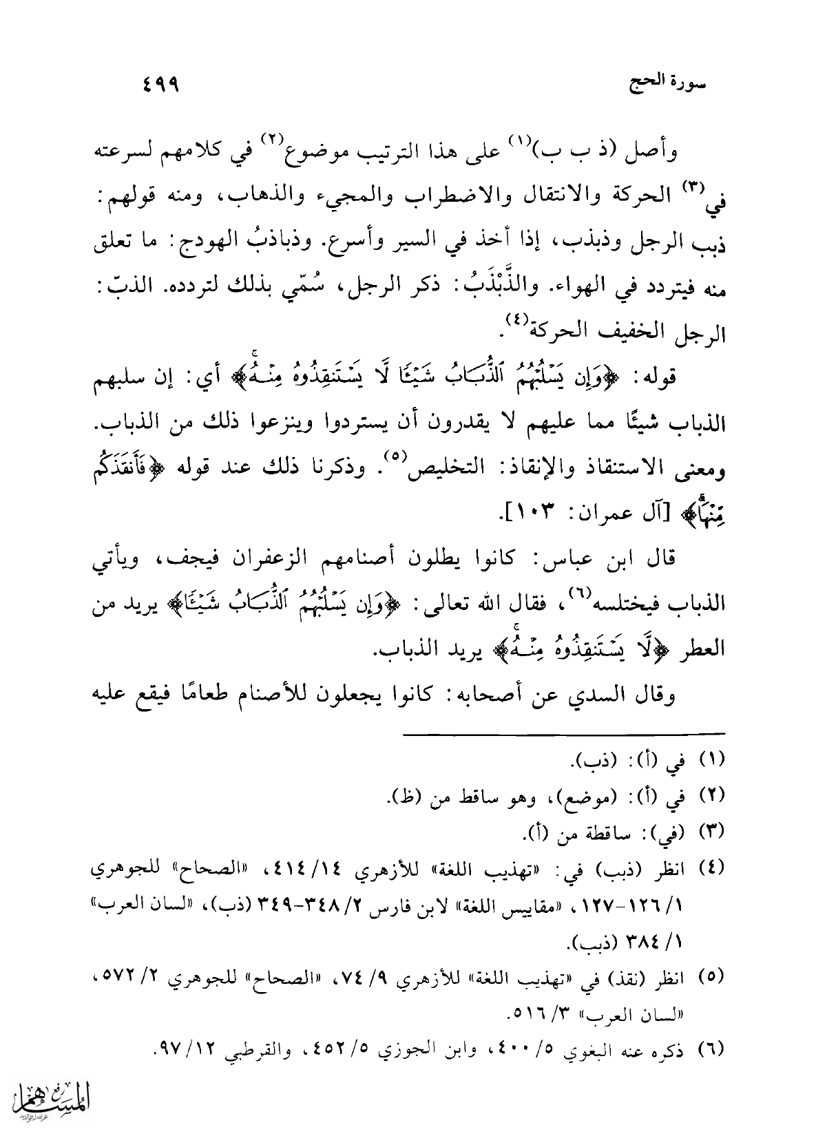 (¬4) انظر (ذبب) في: "تهذيب اللغة" للأزهري 14/ 414، "الصحاح" للجوهري 1/ 126 - 127، "مقاييس اللغة" لابن فارس 2/ 348 - 349 (ذب)، "لسان العرب" 1/ 384 (ذبب).