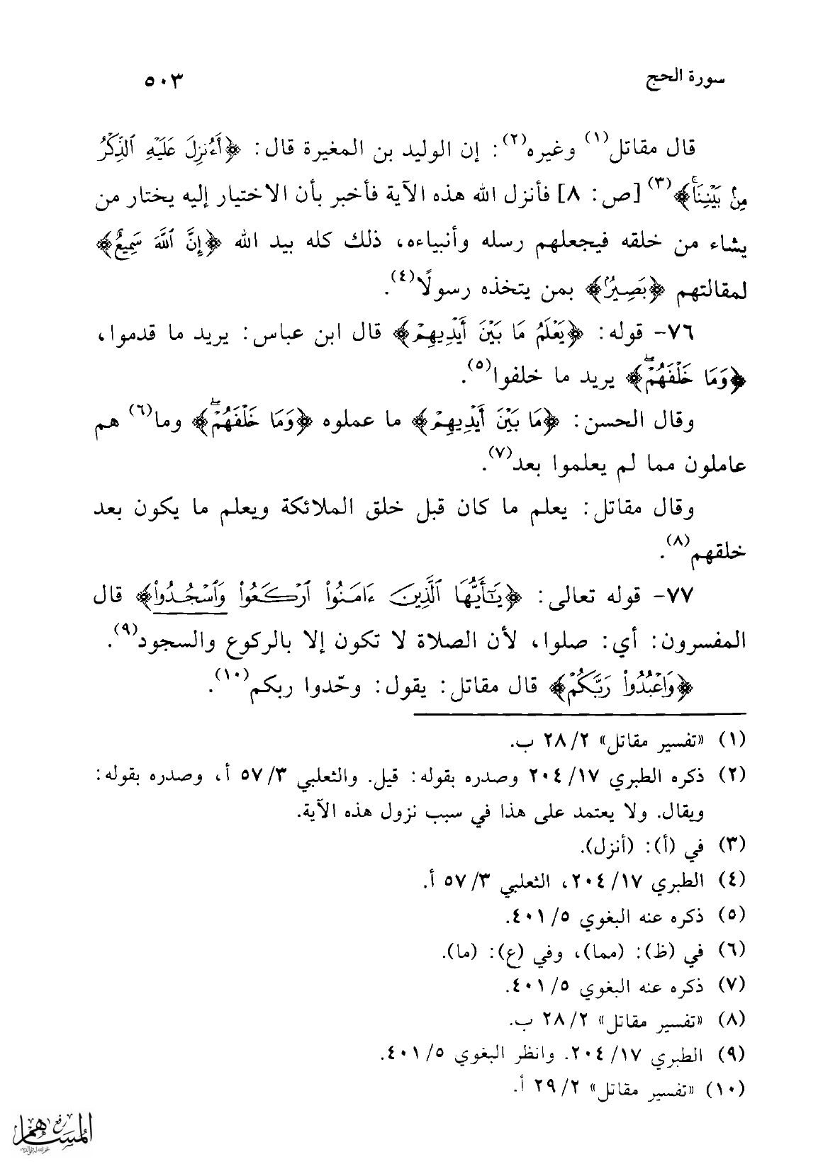 (¬10) "تفسير مقاتل" 2/ 29 أ.