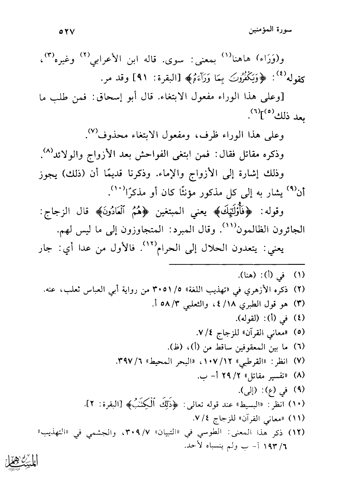 [وعلى هذا الوراء مفعول الابتغاء. قال أبو إسحاق: فمن طلب ما بعد ذلك (¬5)] (¬6).