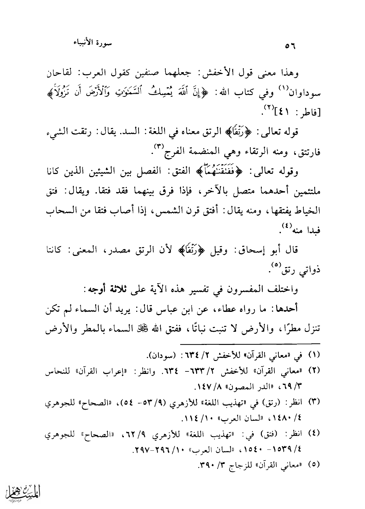 (¬5) "معاني القرآن" للزجاج 3/ 390.