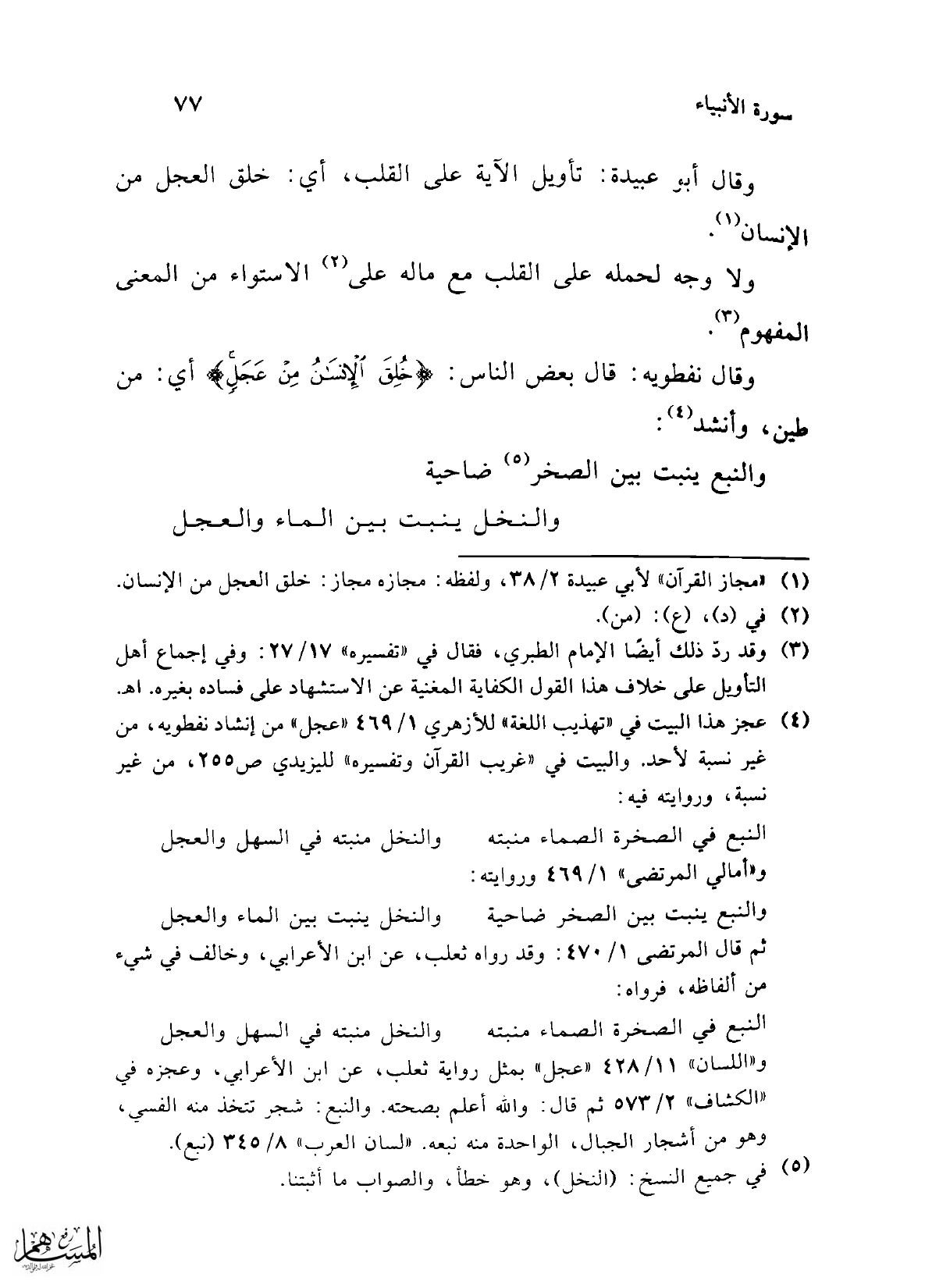 وقال نفطويه: قال بعض الناس: {خُلِقَ الْإِنْسَانُ مِنْ عَجَلٍ} أي: من طين، وأنشد (¬4):