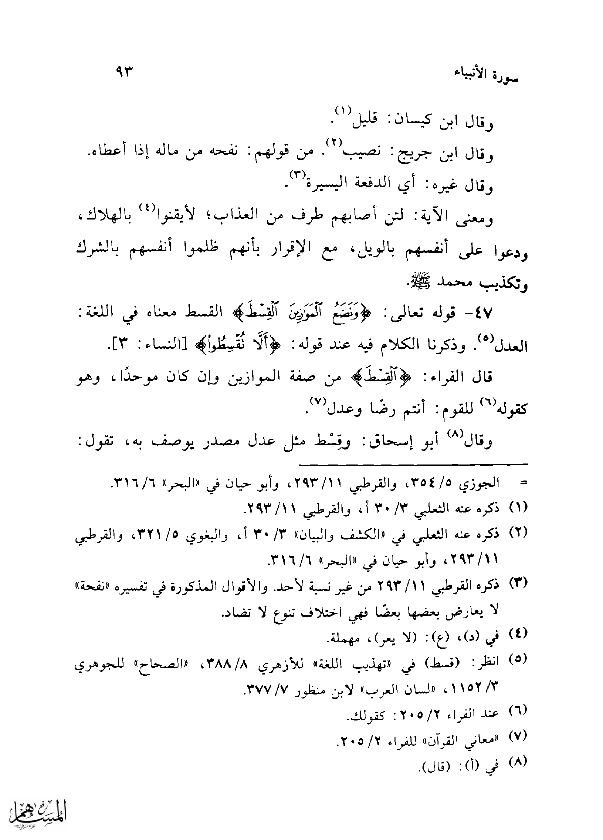 (¬5) انظر: (قسط) في "تهذيب اللغة" للأزهري 8/ 388، "الصحاح" للجوهري 3/ 1152، "لسان العرب" لابن منظور 7/ 377.