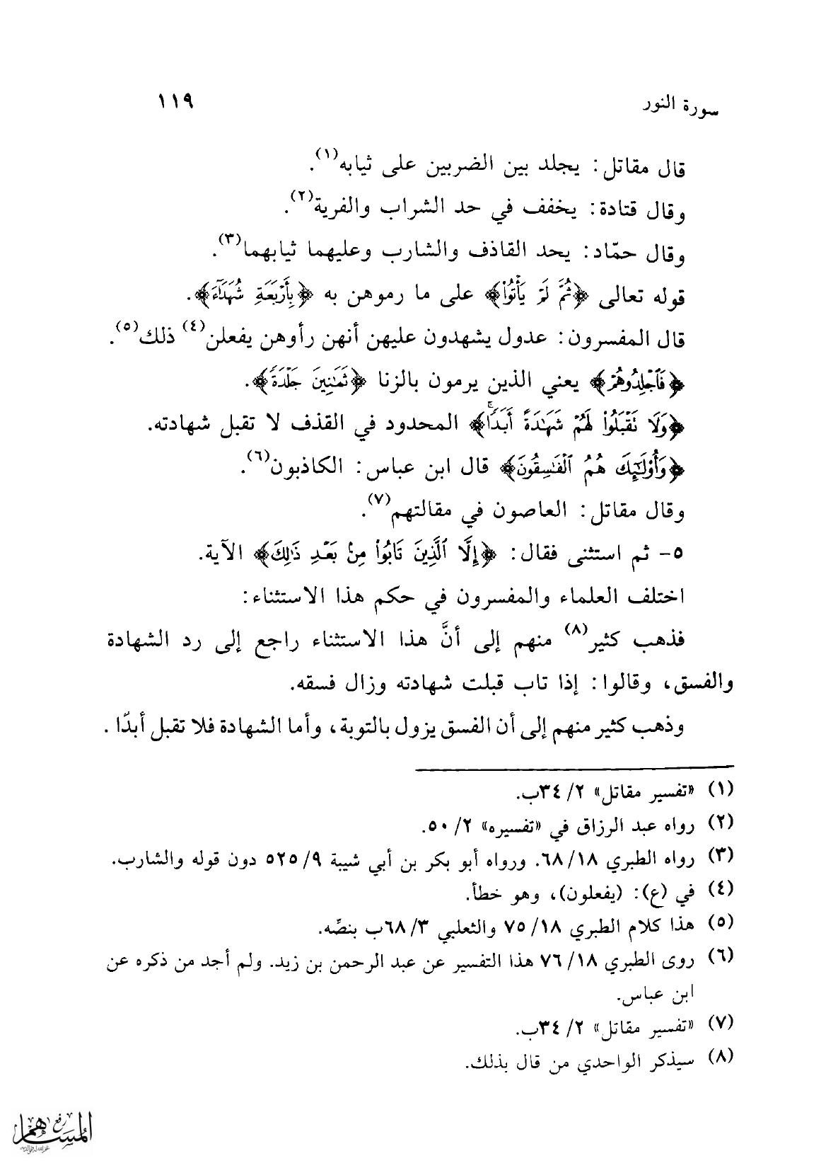 (¬7) "تفسير مقاتل" 2/ 34 ب.