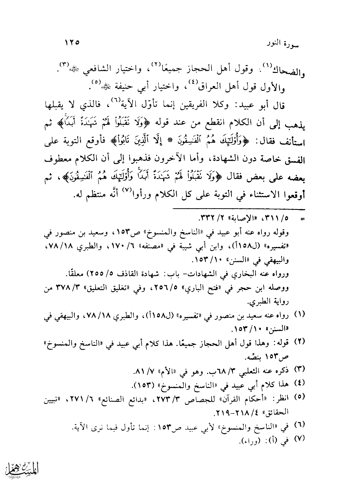 (¬2) قوله: وهذا قول أهل الحجاز جميعًا. هذا كلام أبي عبيد في "الناسخ والمنسوخ" ص 153 بنصِّه.