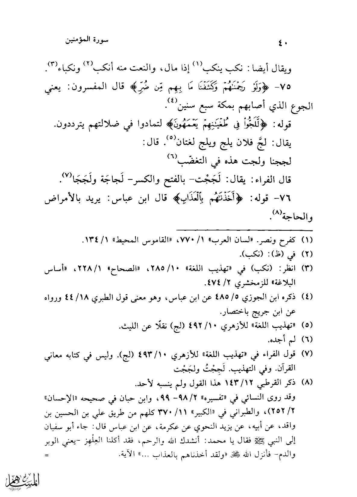 76 - قوله: {أَخَذْنَاهُمْ بِالْعَذَابِ} قال ابن عباس: يريد بالأمراض والحاجة (¬8).