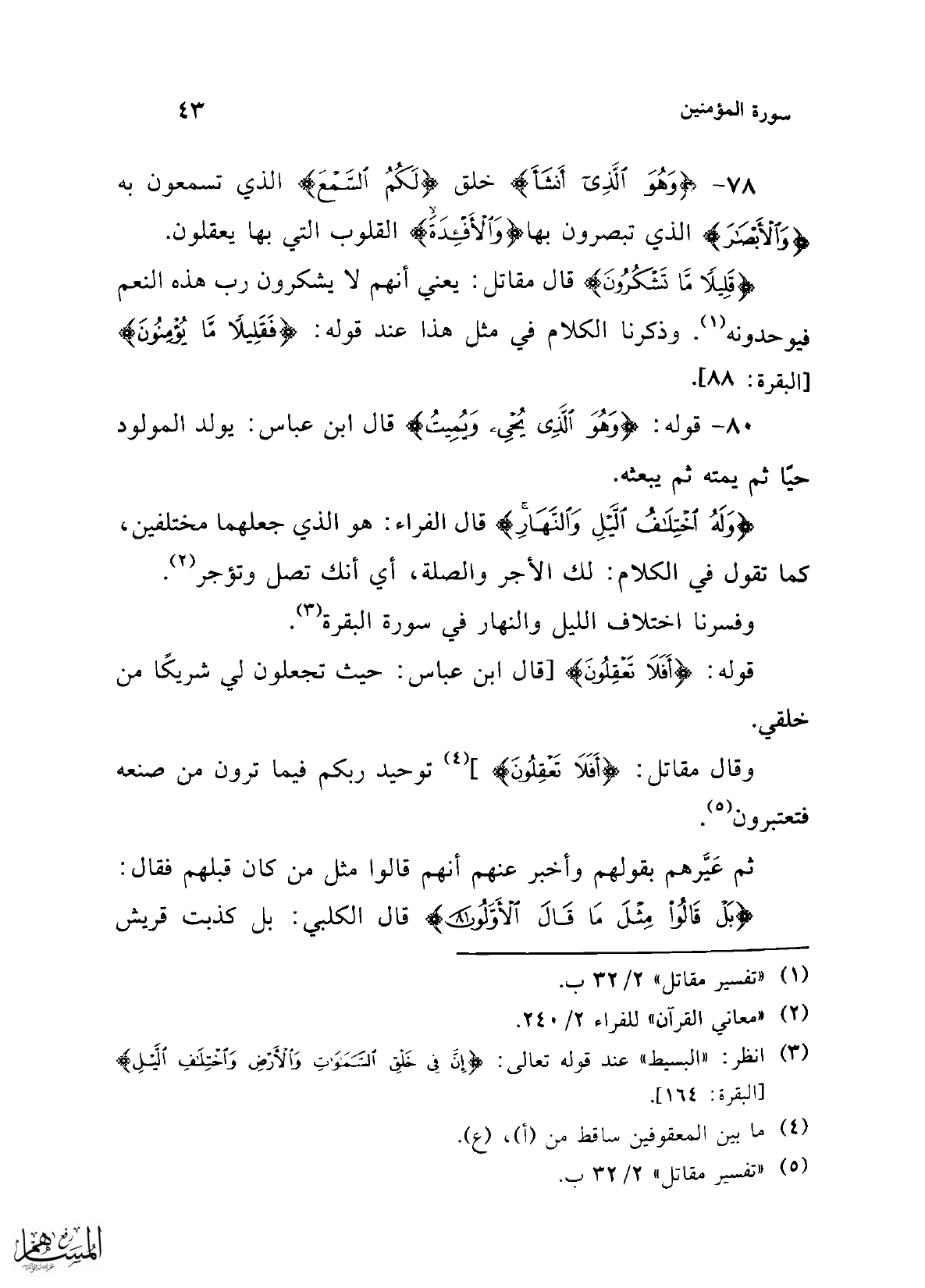 (¬5) "تفسير مقاتل" 2/ 32 ب.