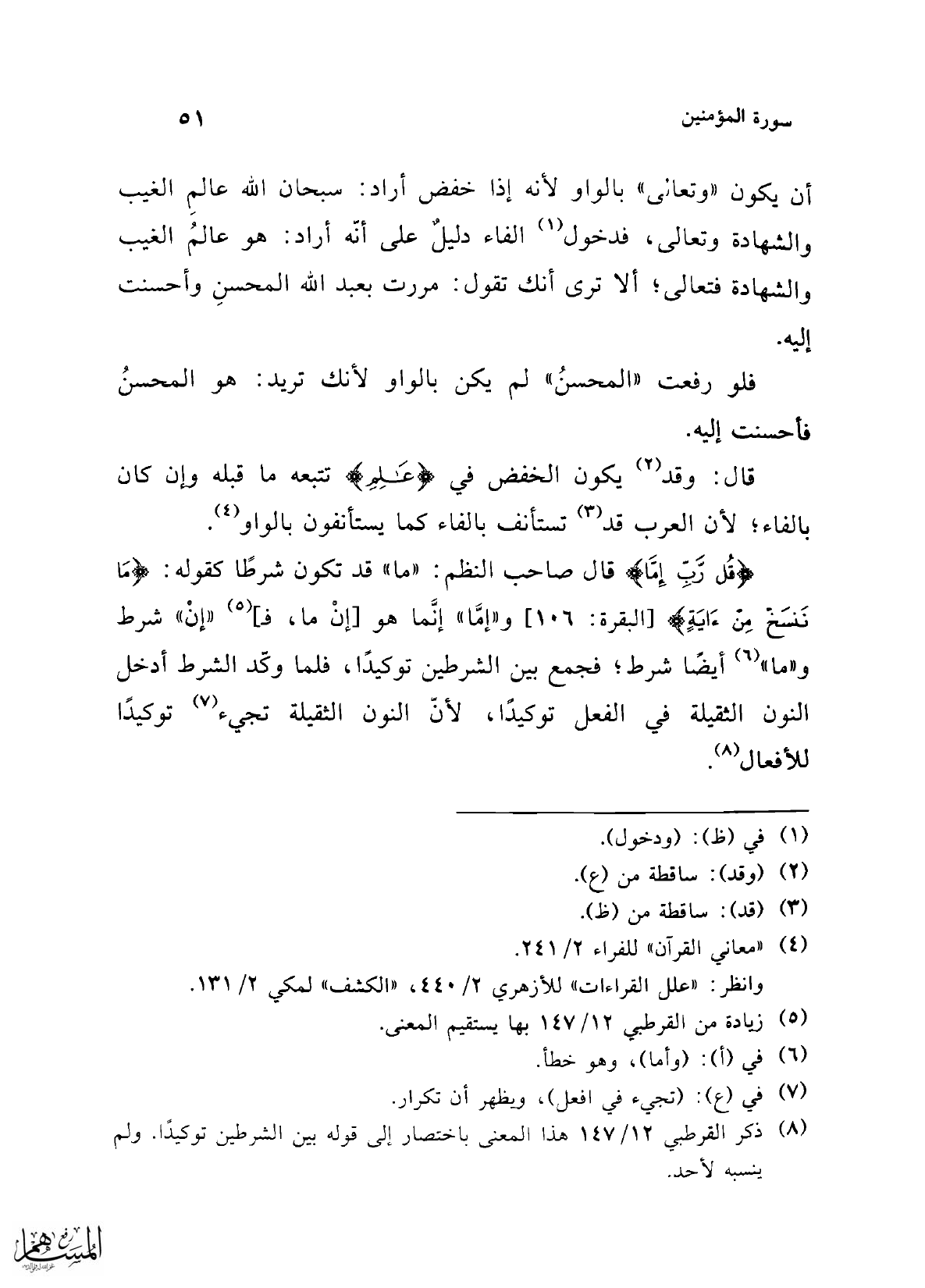قال: وقد (¬2) يكون الخفض في {عَالِمِ} تتبعه ما قبله وإن كان بالفاء؛ لأن العرب قد (¬3) تستأنف بالفاء كما يستأنفون بالواو (¬4).