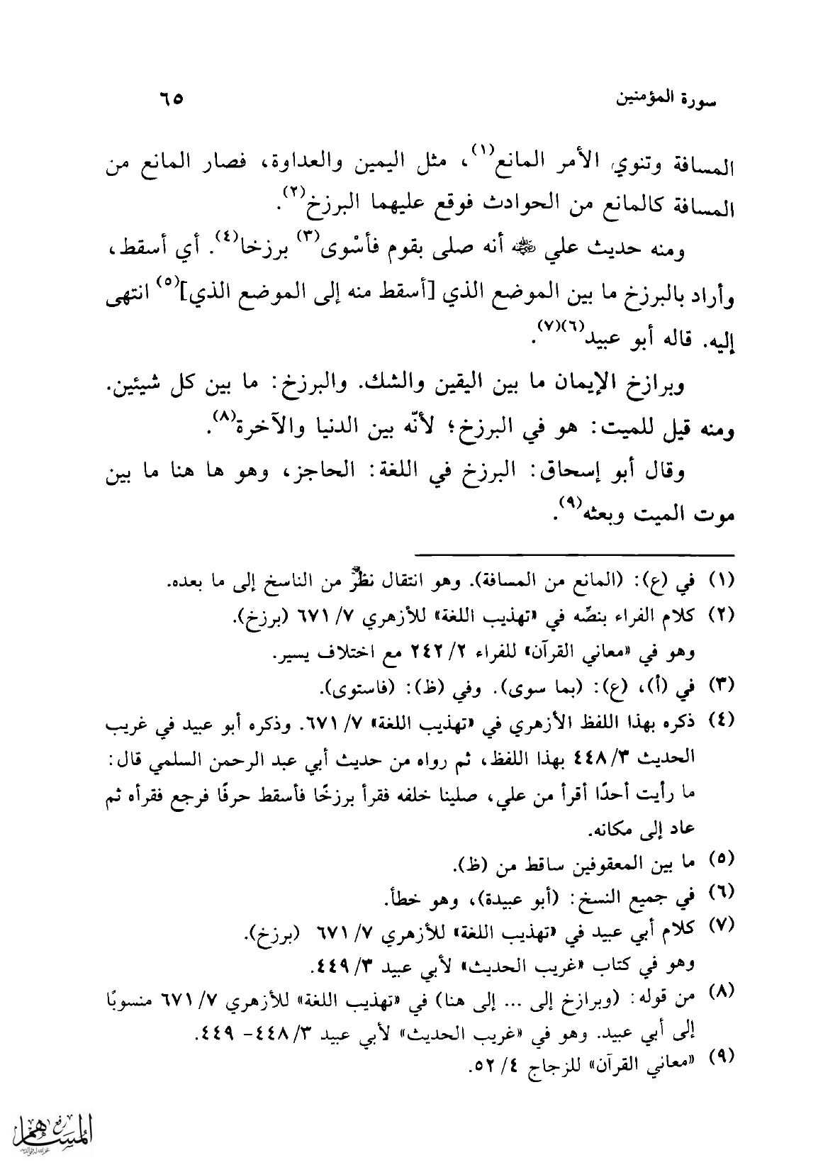 (¬7) كلام أبي عبيد في "تهذيب اللغة" للأزهري 7/ 671 (برزخ). وهو في كتاب "غريب الحديث" لأبي عبيد 449/ 3.