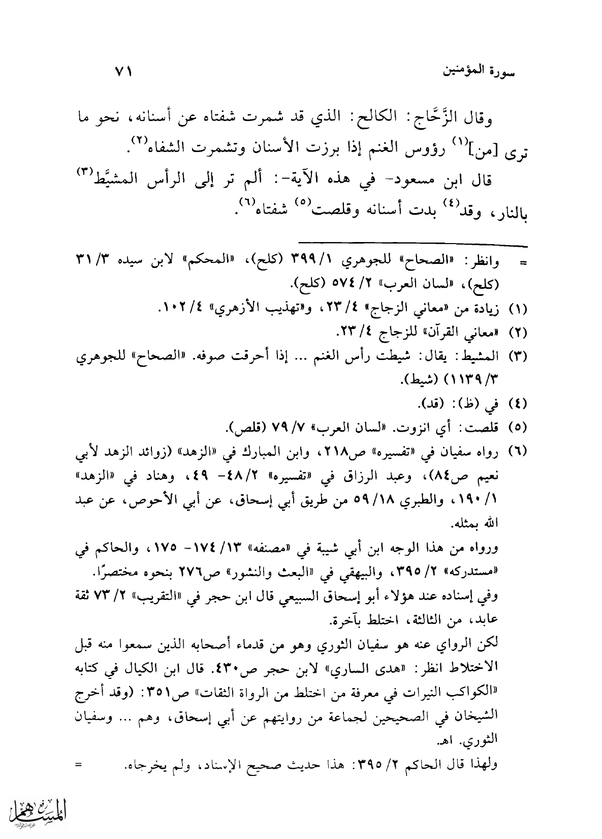 (¬6) رواه سفيان في "تفسيره" ص 218، وابن المبارك في "الزهد" (زوائد الزهد لأبي نعيم ص 84)، وعبد الرزاق في "تفسيره" 2/ 48 - 49، وهناد في "الزهد" 1/ 190، والطبري 18/ 59 من طريق أبي إسحاق، عن أبي الأحوص، عن عبد الله بمثله.