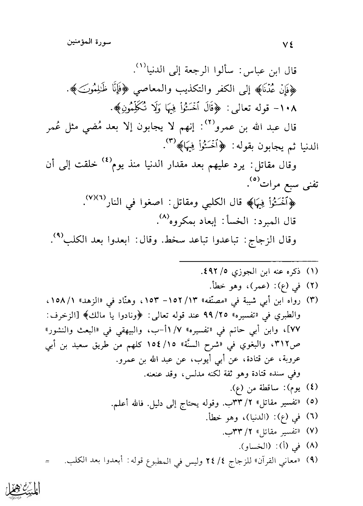 108 - قوله تعالى: {قَالَ اخْسَئُوا فِيهَا وَلَا تُكَلِّمُونِ}.