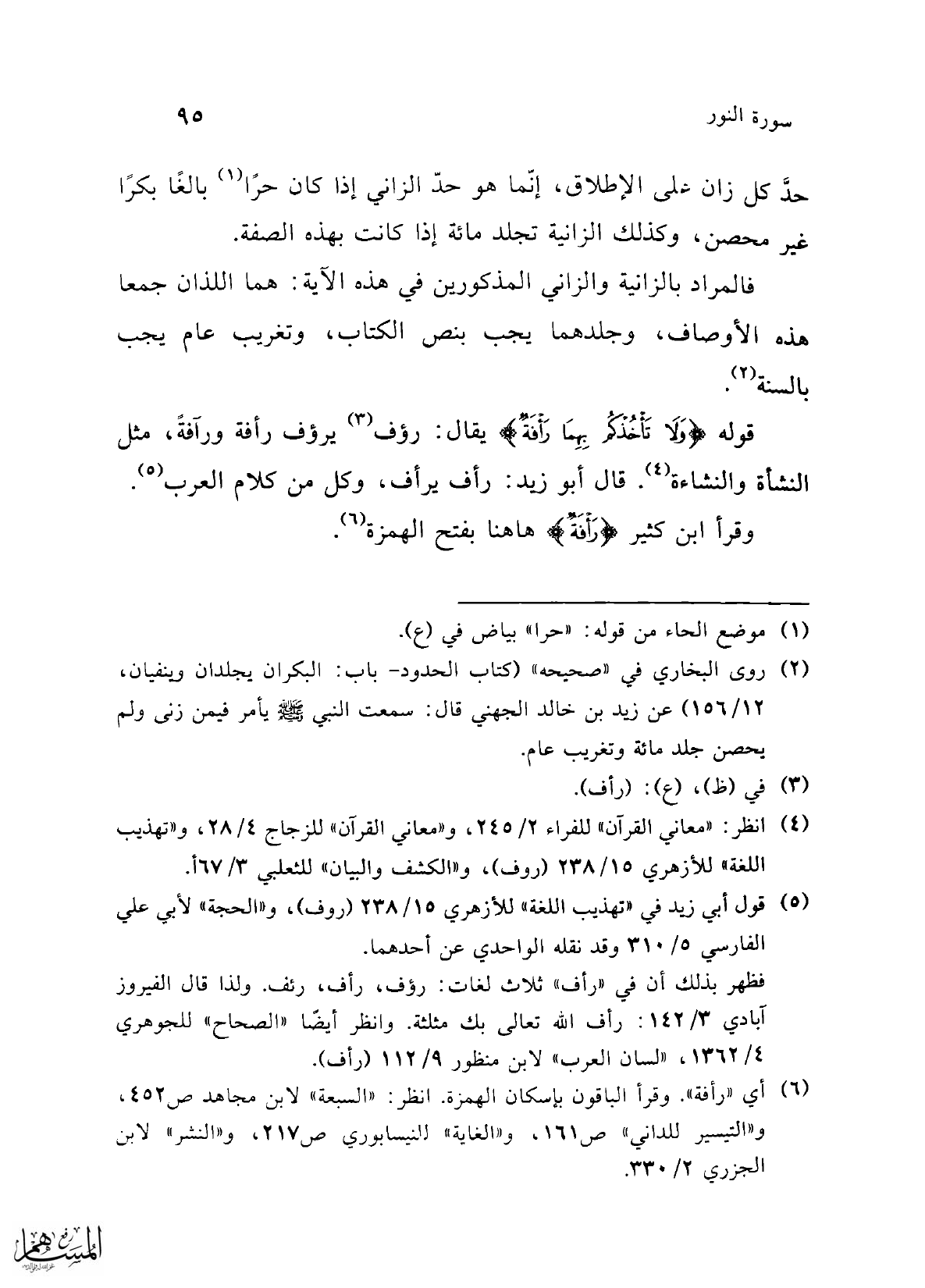 فظهر بذلك أن في "رأف" ثلاث لغات: رؤف، رأف، رئف. ولذا قال الفيروزآبادي 3/ 142: رأف الله تعالى بك مثلثة وانظر أيضًا "الصحاح" للجوهري 4/ 1362، "لسان العرب" لابن منظور 9/ 112 (رأف).