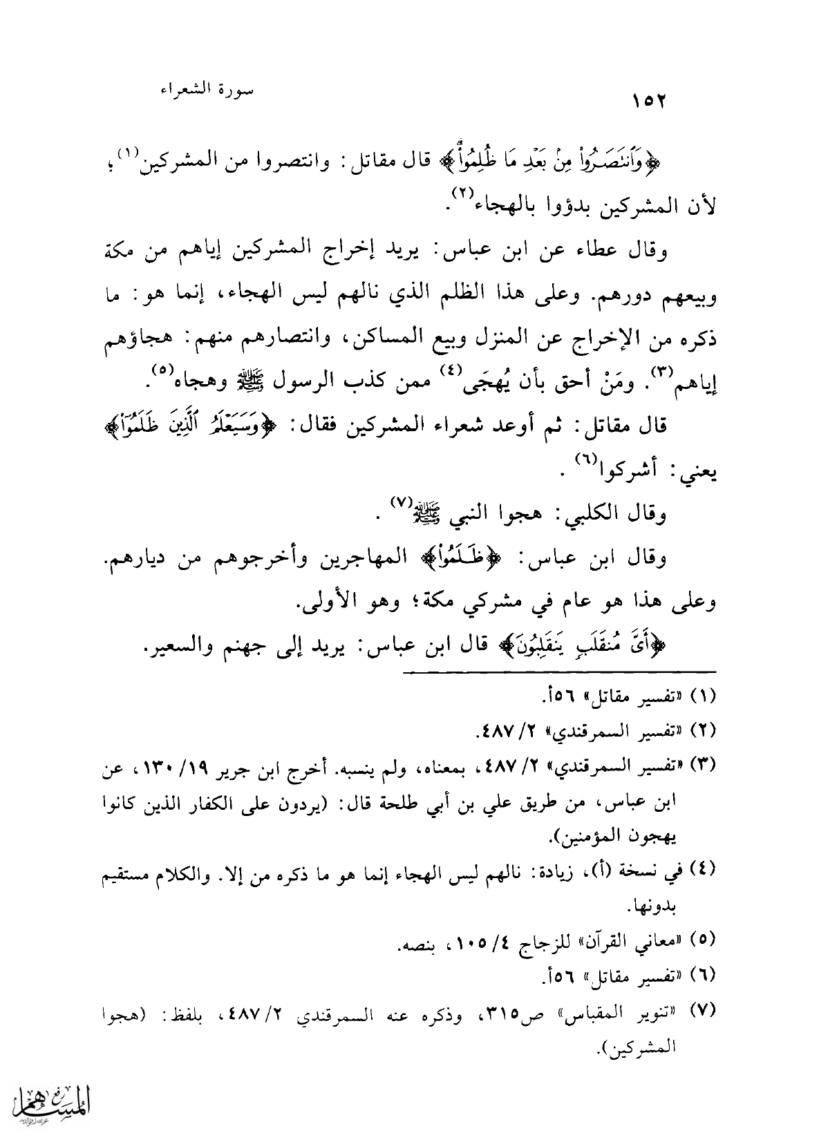 (¬3) "تفسير السمرقندي" 2/ 487، بمعناه، ولم ينسبه. أخرج ابن جرير 19/ 130، عن ابن عباس، من طريق علي بن أبي طلحة قال: (يردون على الكفار الذين كانوا يهجون المؤمنين).