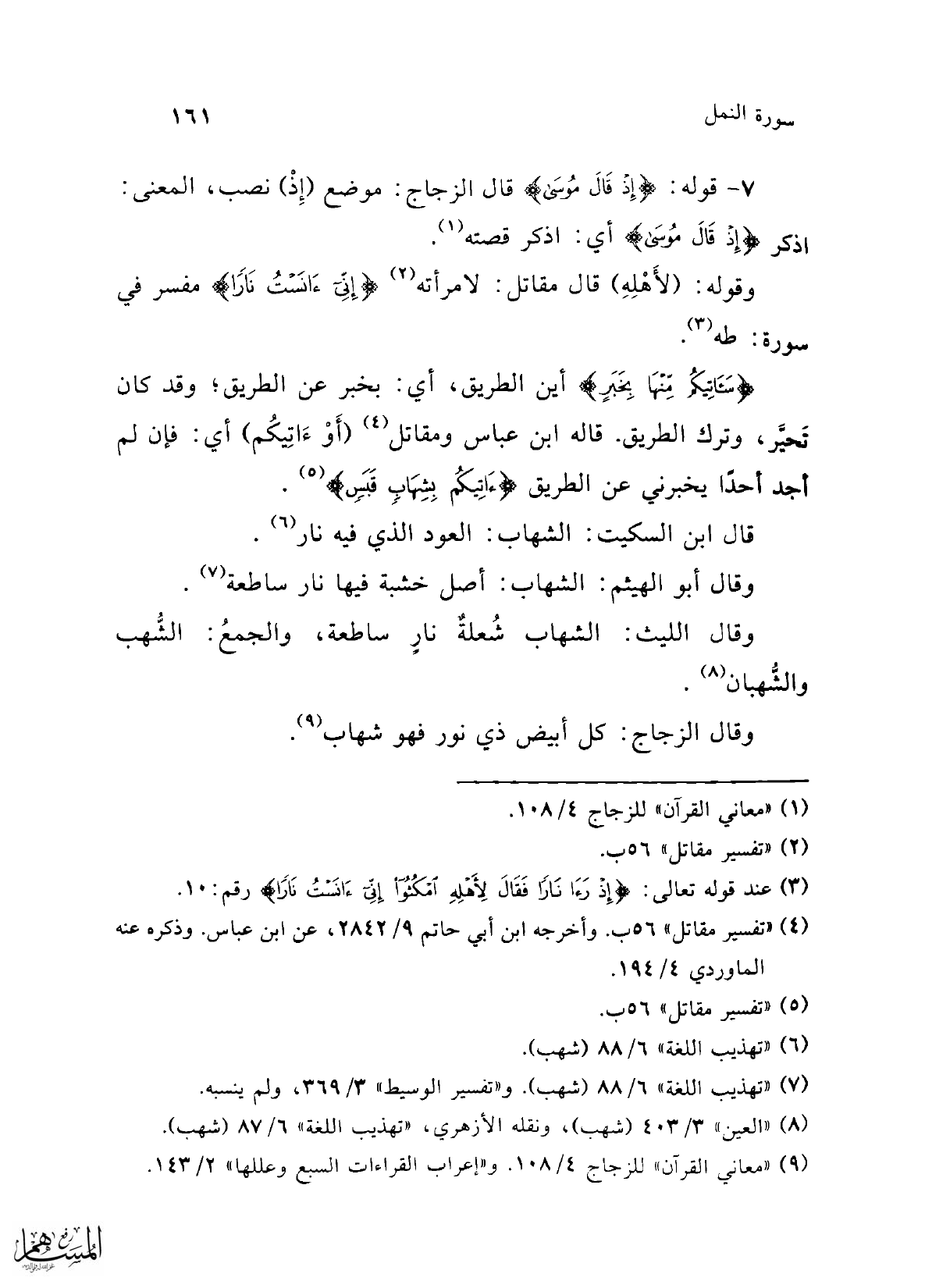 (¬7) "تهذيب اللغة" 6/ 88 (شهب). و"تفسير الوسيط" 3/ 369، ولم ينسبه.