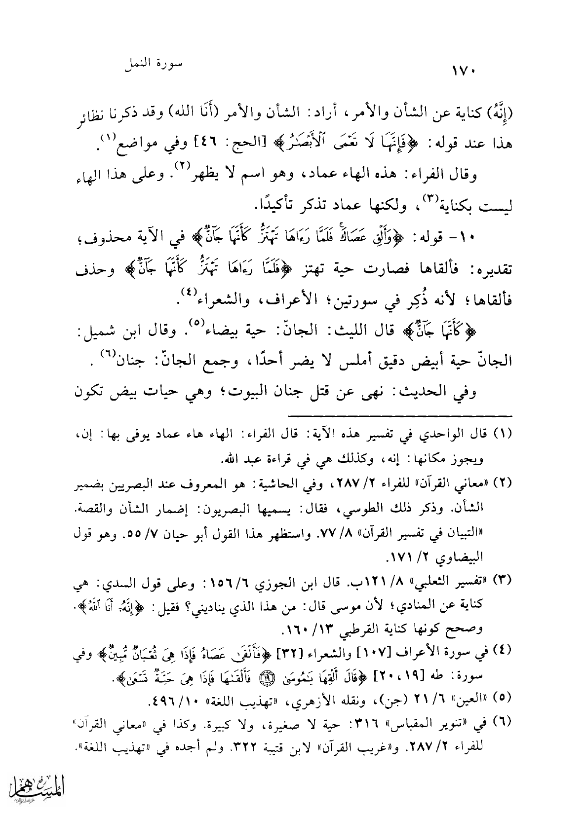 (¬6) في "تنوير المقباس" 316: حية لا صغيرة، ولا كبيرة. وكذا في "معاني القرآن" للفراء 2/ 287. و"غريب القرآن" لابن قتيبة 322. ولم أجده في "تهذيب اللغة".