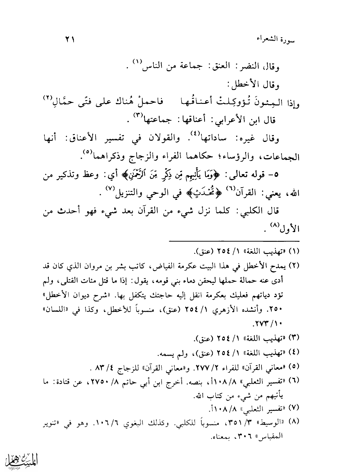 (¬4) "تهذيب اللغة" 1/ 254 (عنق)، ولم يسمه.