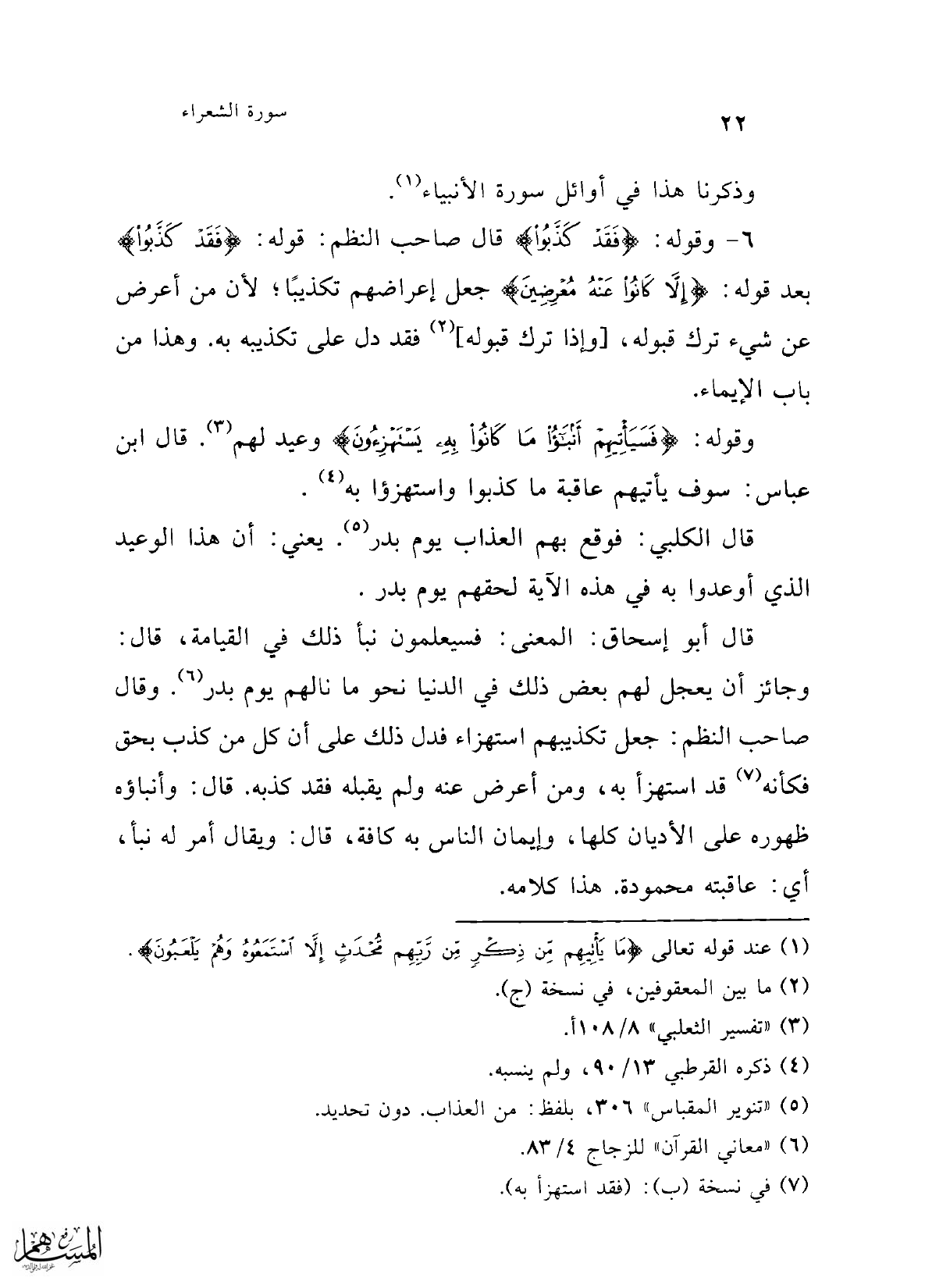 (¬6) "معاني القرآن" للزجاج 4/ 83.