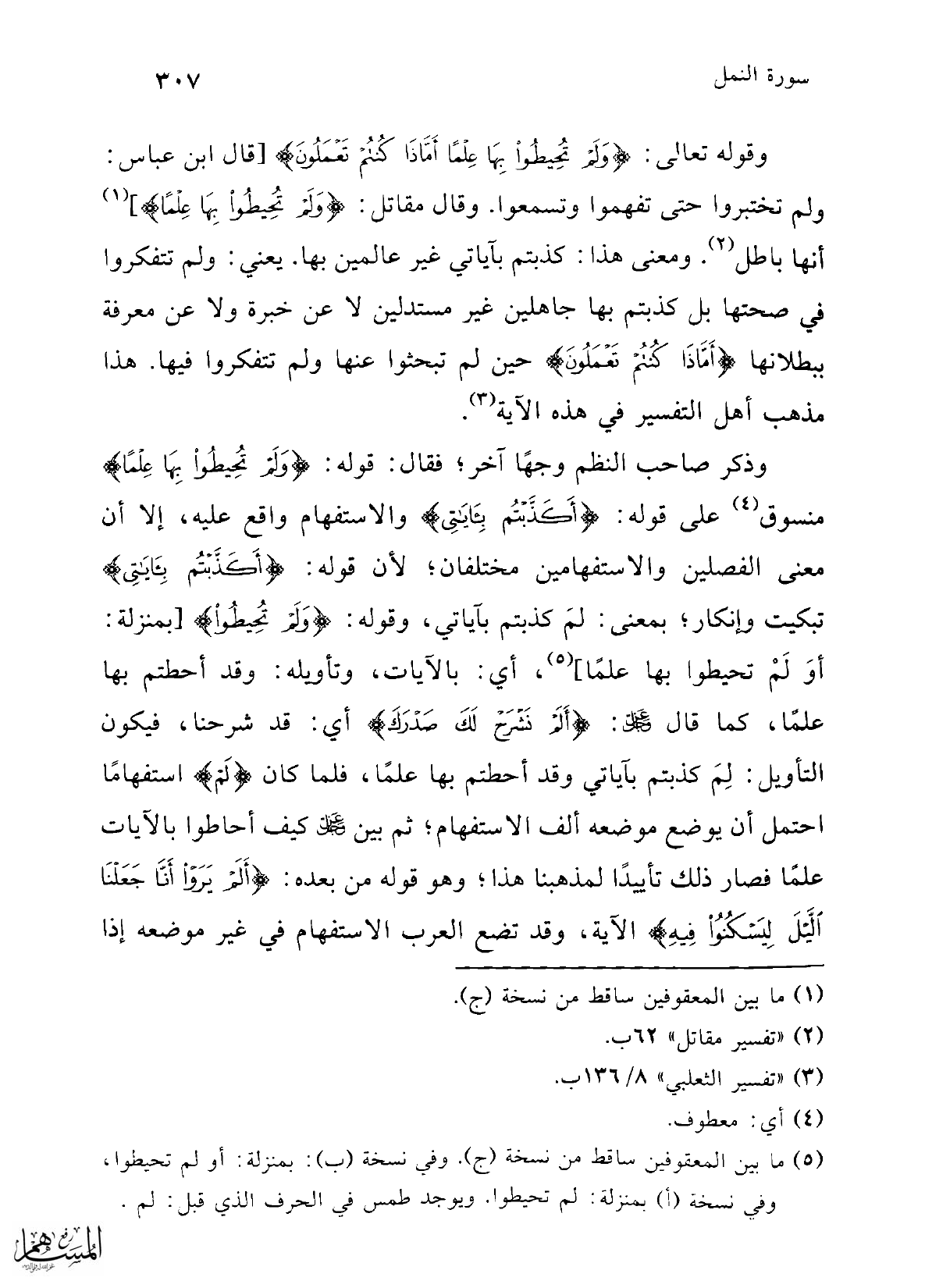 (¬5) ما بين المعقوفين ساقط من نسخة (ج). وفي نسخة (ب): بمنزلة: أو لم تحيطوا، وفي نسخة (أ) بمنزلة: ثم تحيطوا. ويوجد طمس في الحرف الذي قبل: لم.