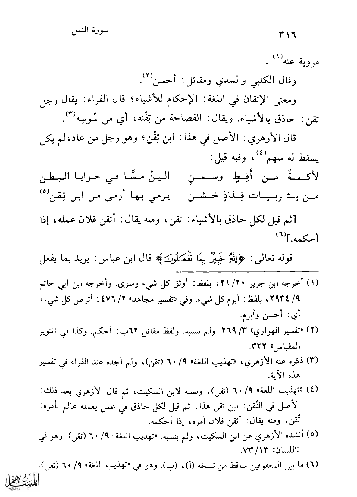 (¬3) ذكره عنه الأزهري، "تهذيب اللغة" 9/ 60 (تقن)، ولم أجده عند الفراء في تفسير هذه الآية.