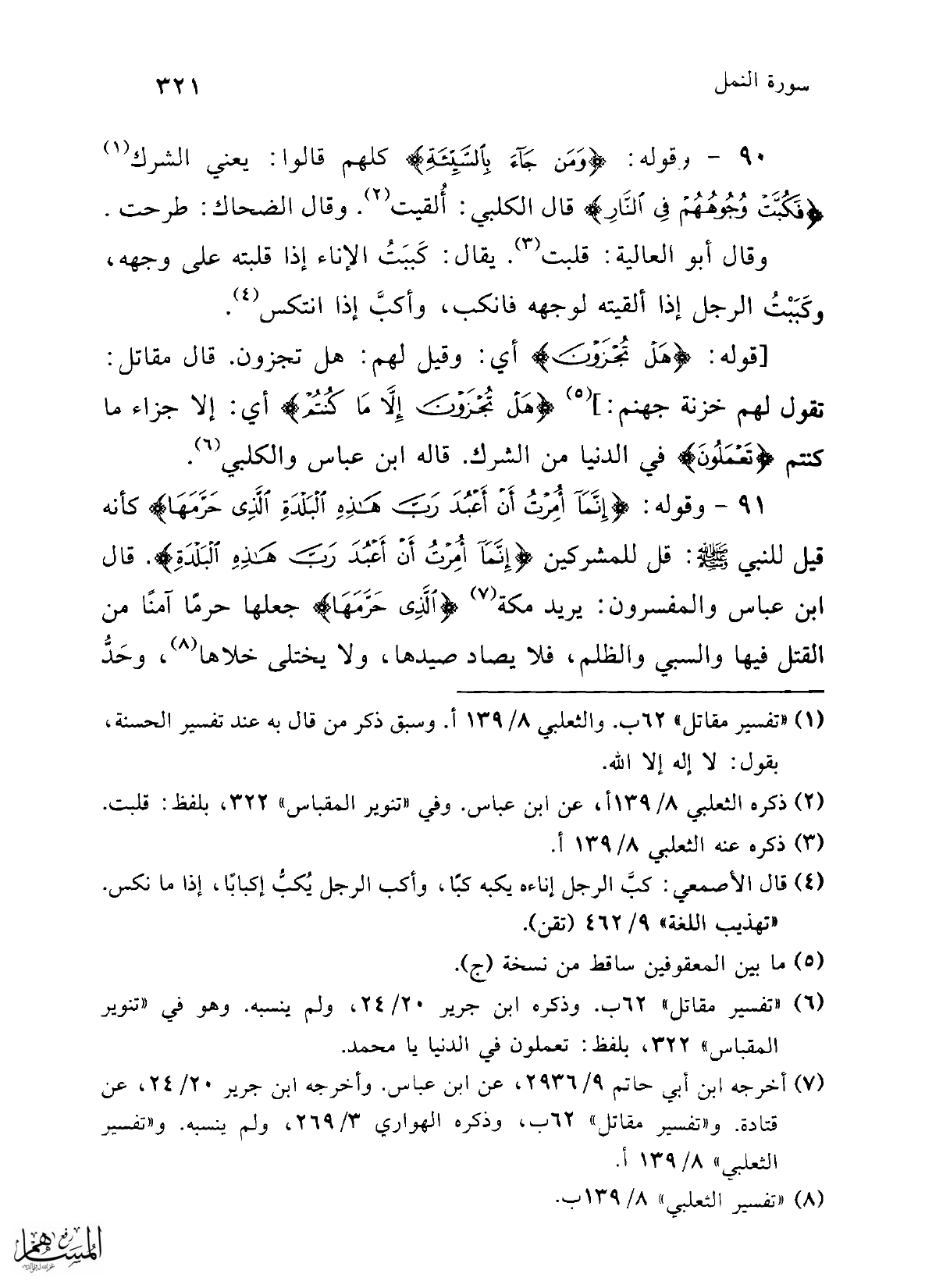 (¬8) "تفسير الثعلبي" 8/ 139 ب.