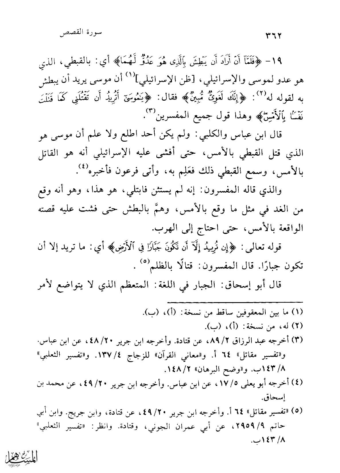19 - {فَلَمَّا أَنْ أَرَادَ أَنْ يَبْطِشَ بِالَّذِي هُوَ عَدُوٌّ لَهُمَا} أي: بالقبطي، الذي هو عدو لموسى والإسرائيلي، [ظن الإسرائيلي] (¬1) أن موسى يريد أن يبطش به لقوله له (¬2): {إِنَّكَ لَغَوِيٌّ مُبِينٌ} فقال: {يَا مُوسَى أَتُرِيدُ أَنْ تَقْتُلَنِي كَمَا قَتَلْتَ نَفْسًا بِالْأَمْسِ} وهذا قول جميع المفسرين (¬3).