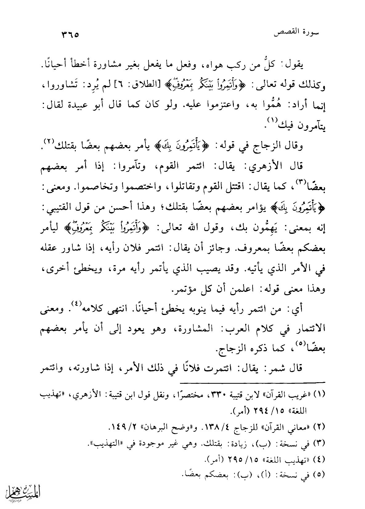 (¬1) "غريب القرآن" لابن قتيبة 330، مختصرًا، ونقل قول ابن قتيبة: الأزهري، "تهذيب اللغة" 15/ 294 (أمر).
