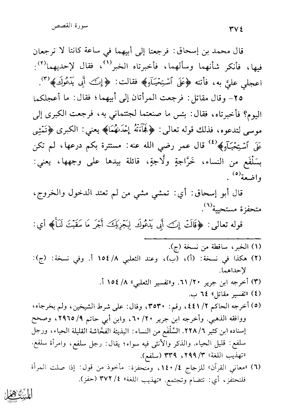 (¬5) أخرجه الحاكم 2/ 441، رقم: 3530، وقال: على شرط الشيخين، ولم يخرجاه، ووافقه الذهبي. وأخرجه ابن جرير 20/ 60، وابن أبي حاتم 9/ 2965، وصحح إسناده ابن كثير 6/ 228. السَّلْفَع من النساء: البذيئة الفحَّاشة القليلة الحياء، ورجل سلفع: قليل الحياء. والذكر والأنثى فيه سواء؛ يقال: رجل سلفع، وامرأة سلفع. "تهذيب اللغة" 3/ 299، 339 (سلفع).