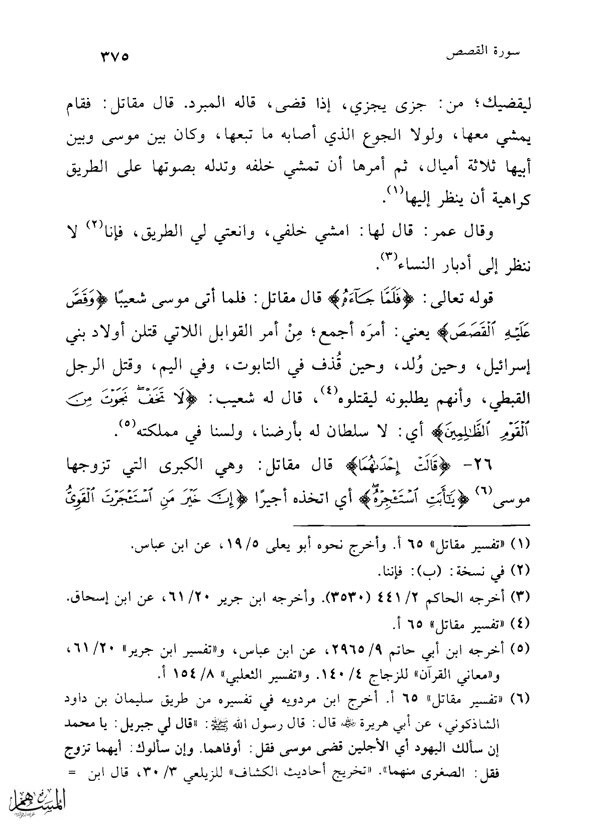 (¬5) أخرجه ابن أبي حاتم 9/ 2965، عن ابن عباس، و"تفسير ابن جرير" 20/ 61، و"معاني القرآن" للزجاج 4/ 140. و"تفسير الثعلبي" 8/ 154 أ.
