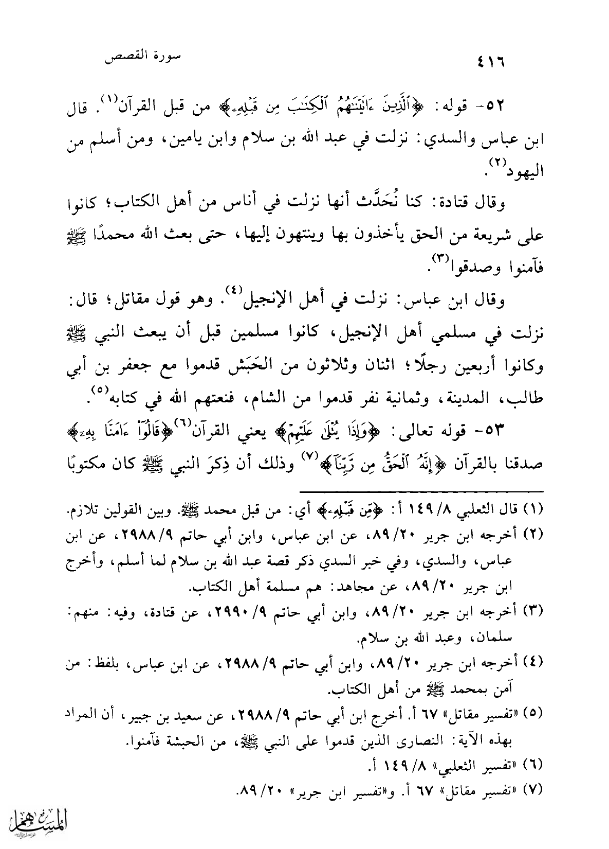 (¬3) أخرجه ابن جرير 20/ 89، وابن أبي حاتم 9/ 2990، عن قتادة، وفيه: منهم: سلمان، وعبد الله بن سلام.