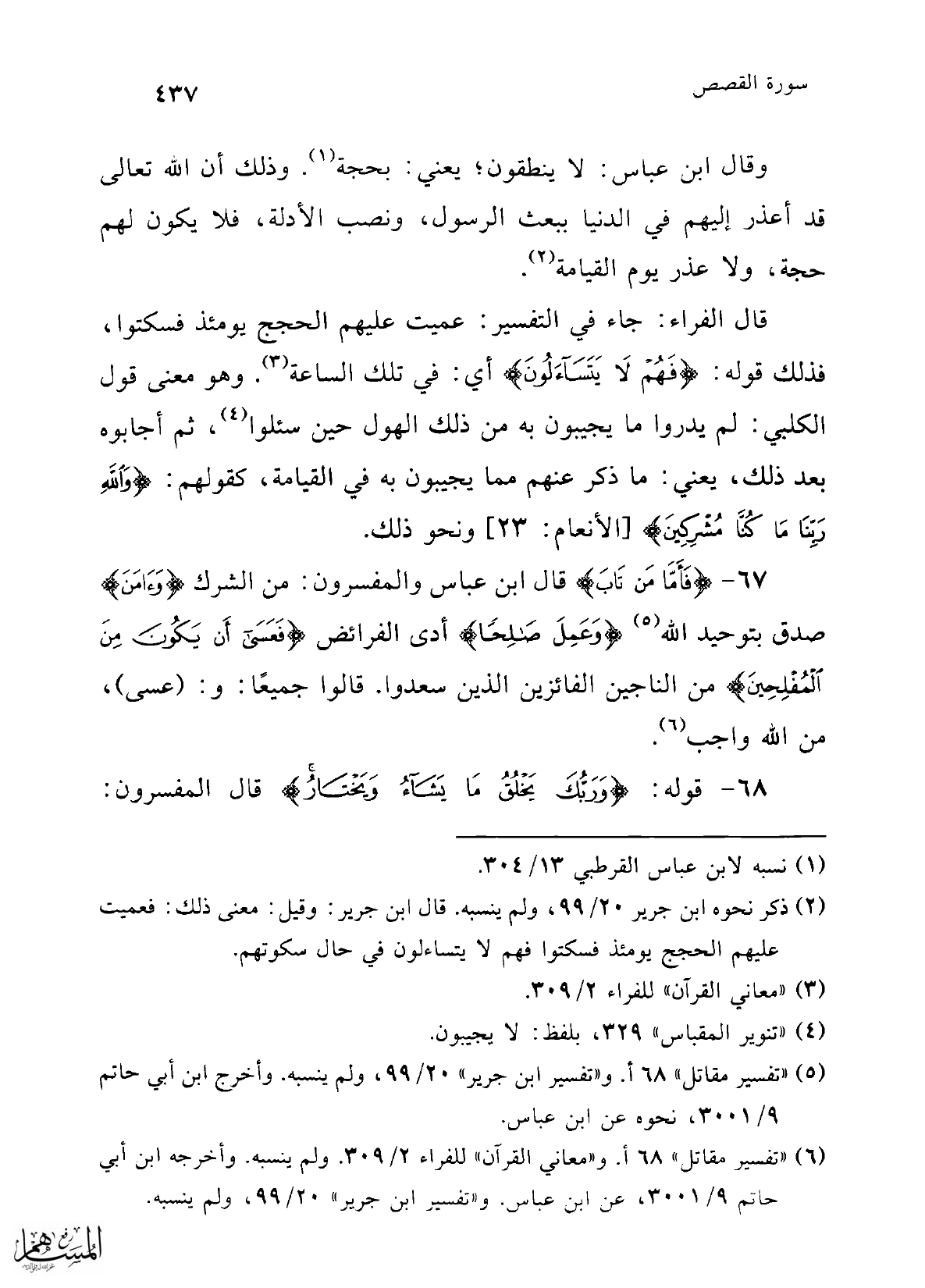 (¬1) نسبه لابن عباس القرطبي 13/ 304.
