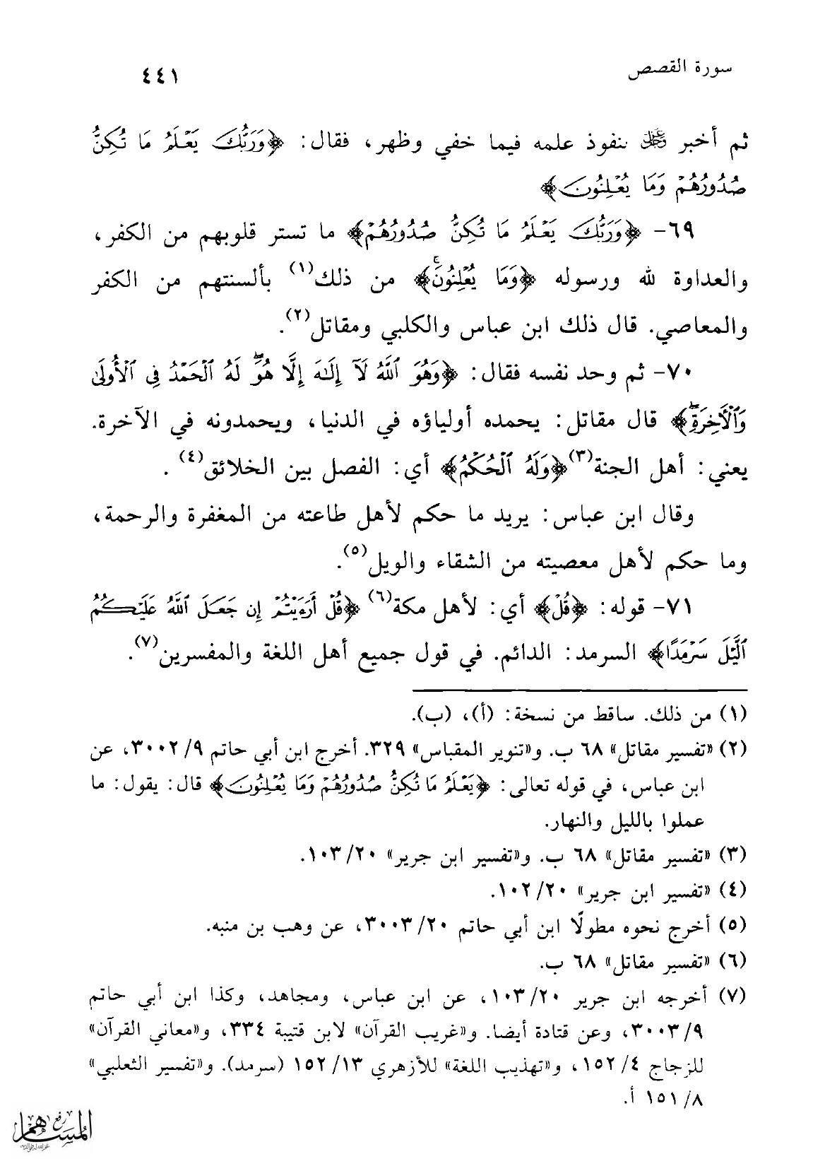 (¬6) "تفسير مقاتل" 68 ب.